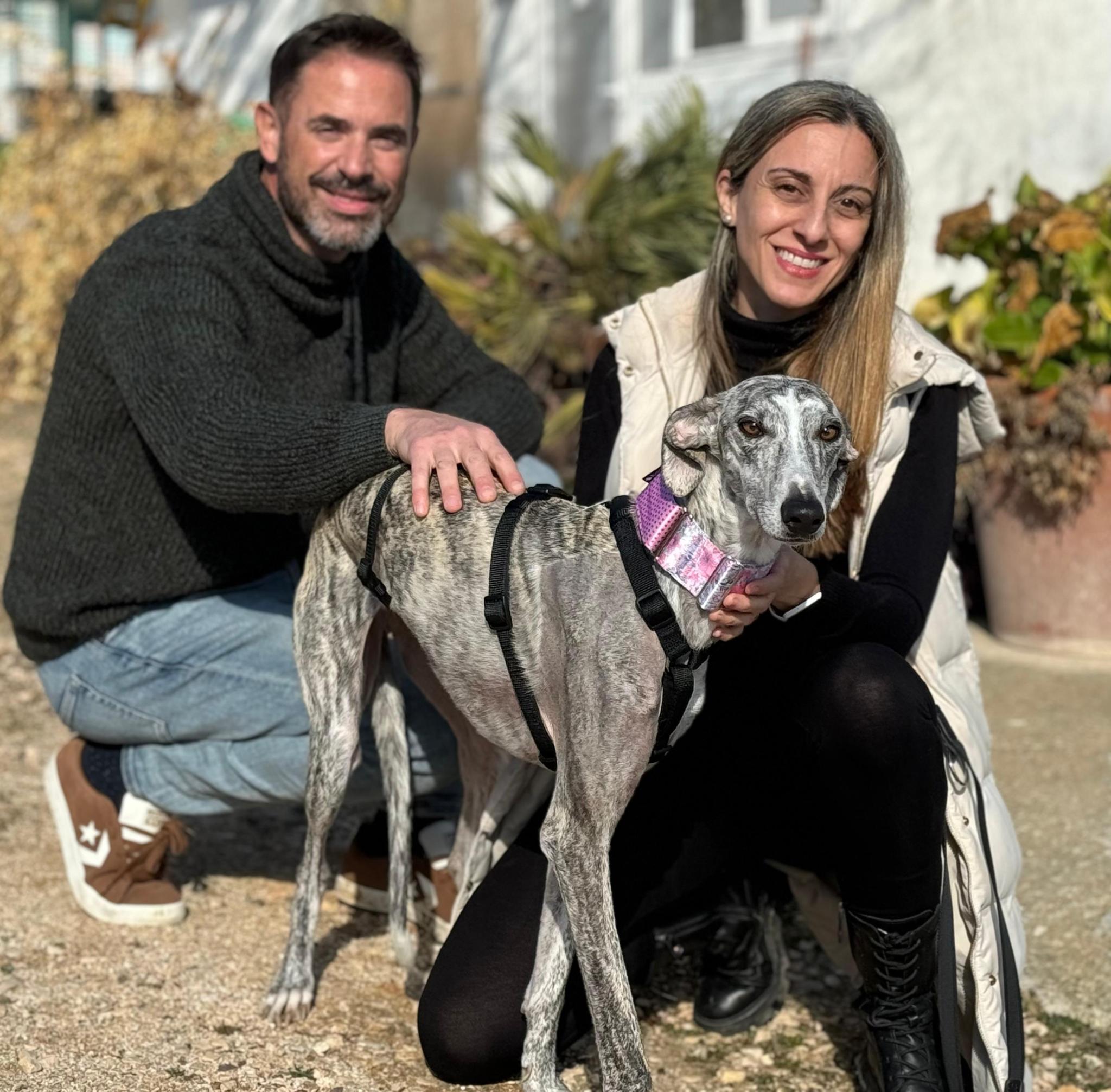Esta preciosa galga blanca y negra llega para ser feliz.