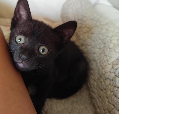 Morci en adopción. Gatita super simpática de mes y medio encontrada en un contenedor en una caja junto a restos de comida, más miserable no se puede ser.