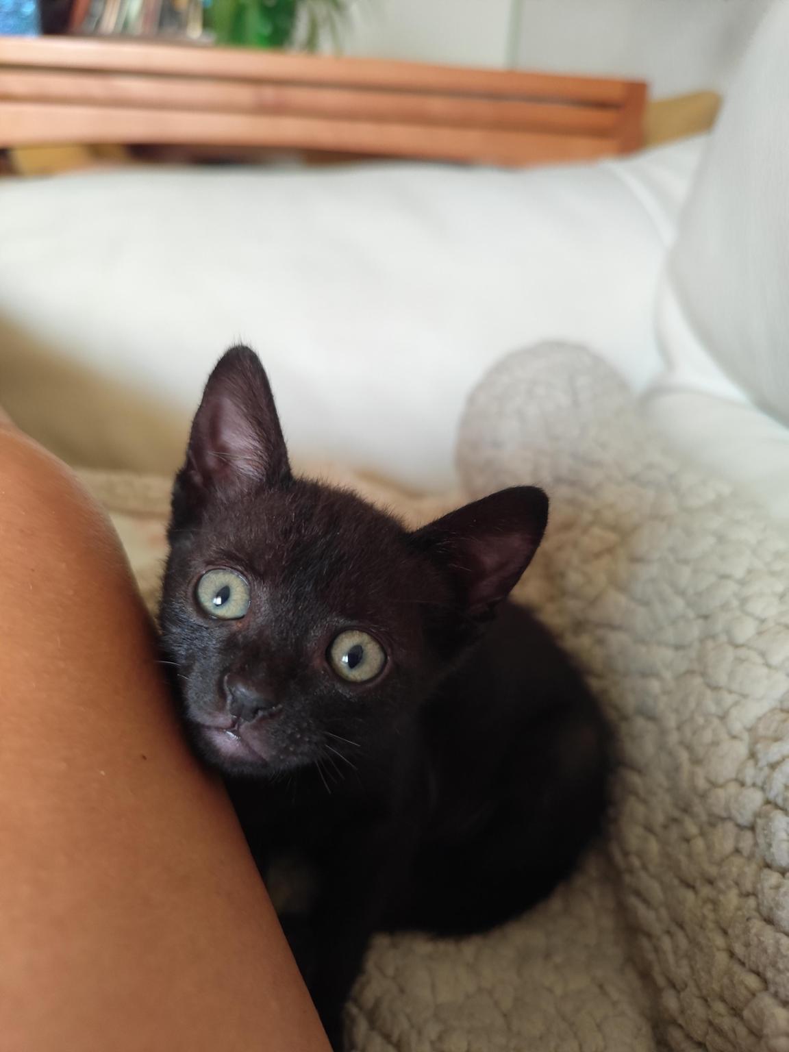 Pues este es Cheto, estaba en la calle pidiendo comida y atención.Tendra 4 mesecitos y es súper sociable y cariñoso.Le adoptas??