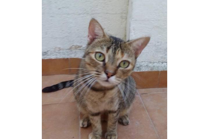 Compartía el patio con Yago, Maya y Nela. Se pasaban el día jugando, no se cansaban nunca. Pero, de repente, Yago (macho sin castrar) le cogió manía y le atacó un par de veces; la segunda vez, con consecuencias más graves que la primera. Sin tener el dinero para pagar la factura, tuvimos que llevarlo al veterinario para curarle.