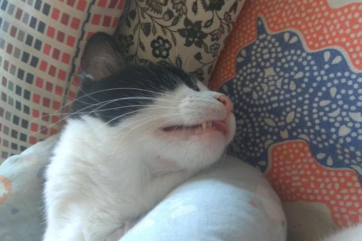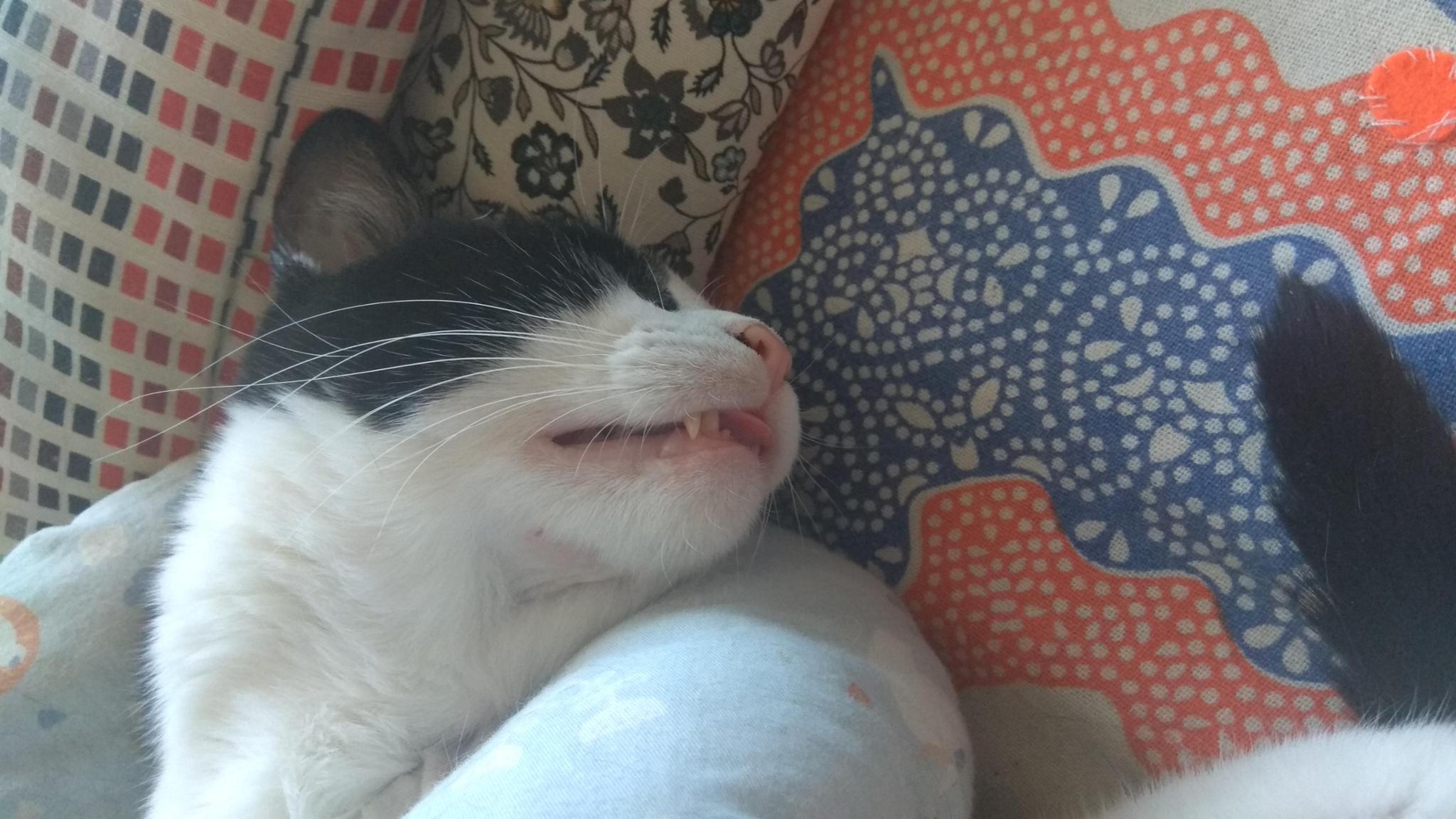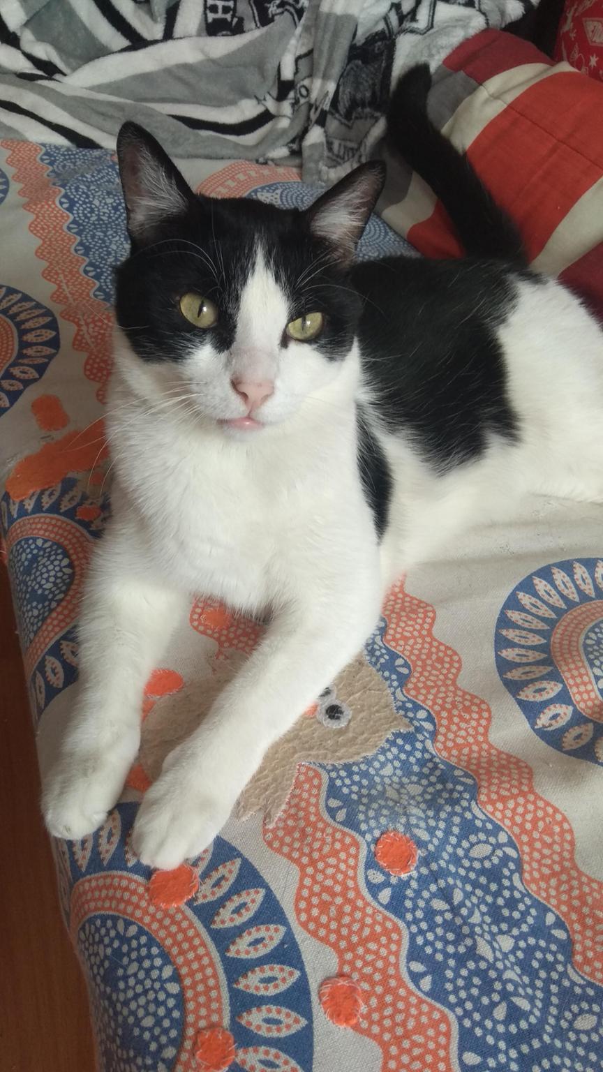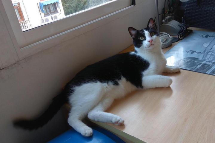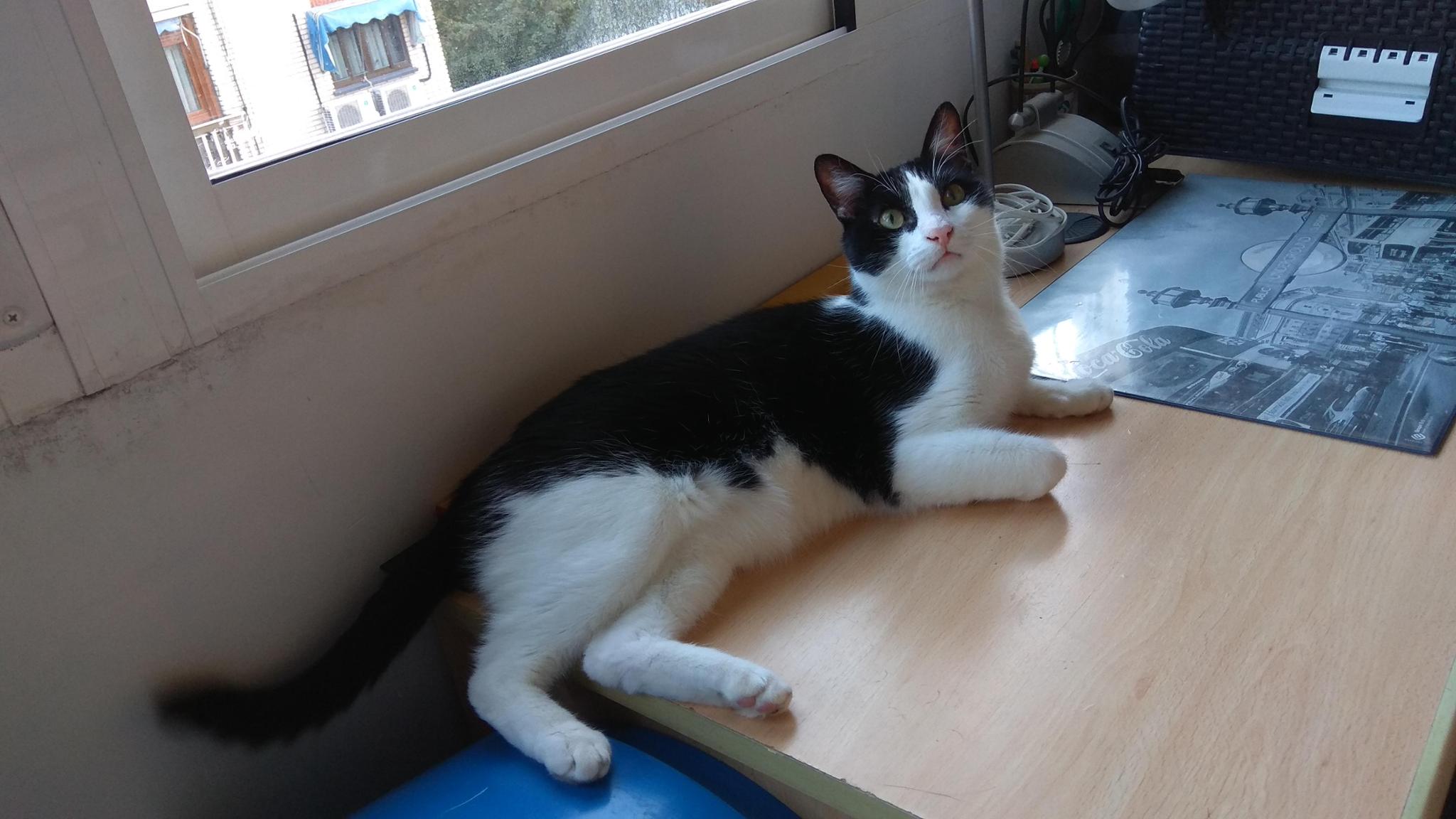 Enviamos fotos al Hospital Felino, en la de abajo estoy descansando (en las otras se ven mejor mis ojos y mi calva, las podéis ver dentro de las fotos del proyecto). Continuamos con Apoquel, Gabapentina y collar a ratos. Y tenemos cita el miércoles 14 para una analítica de revisión antes de tomar la decisión sobre el nuevo tratamiento.