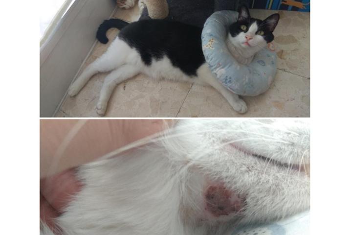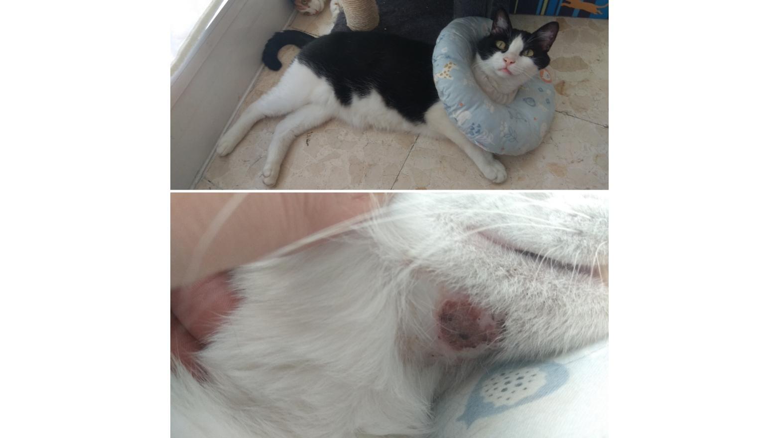 Enviamos fotos al Hospital Felino (las podéis ver dentro del proyecto). Me hice heridas al rascarme en una oreja y en la calva de debajo de la barbilla, pero parece que fue puntual, ahora lo tengo mucho mejor. Continuamos con Apoquel y Gabapentina.