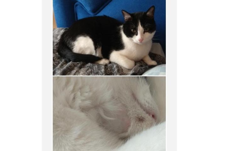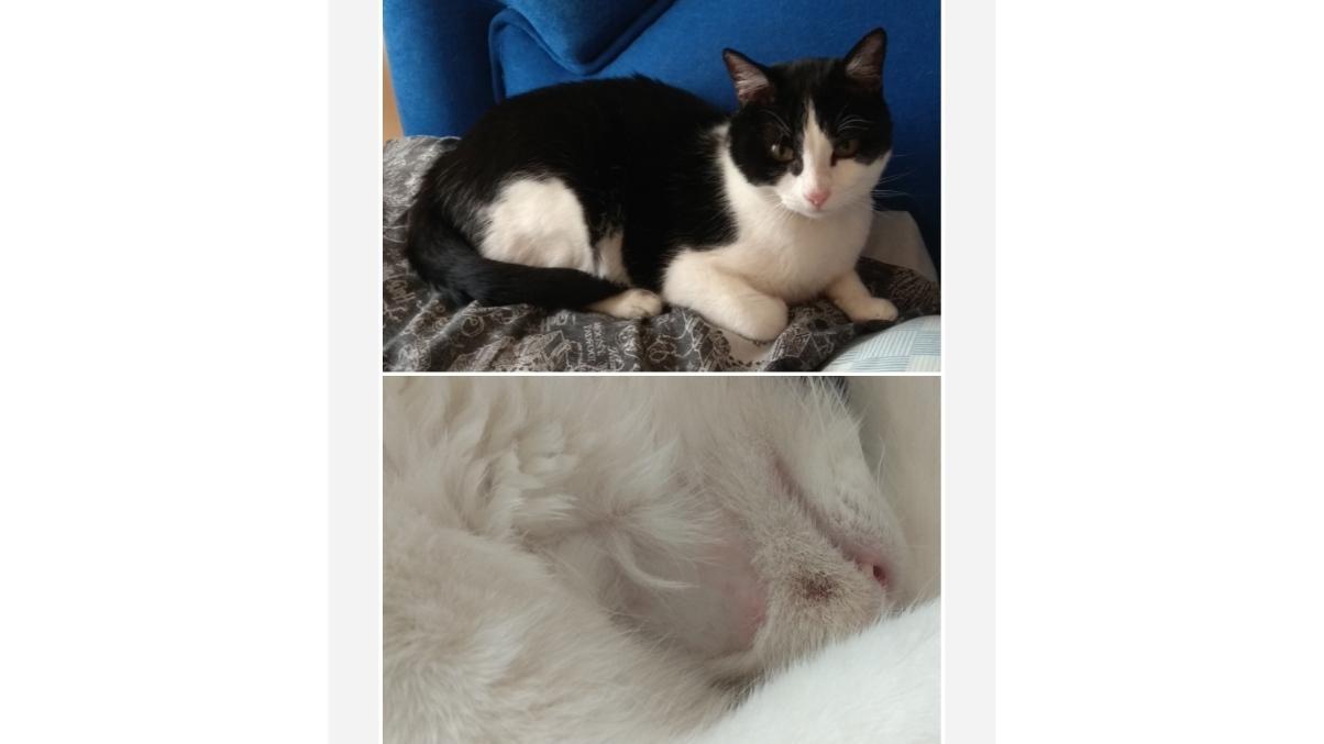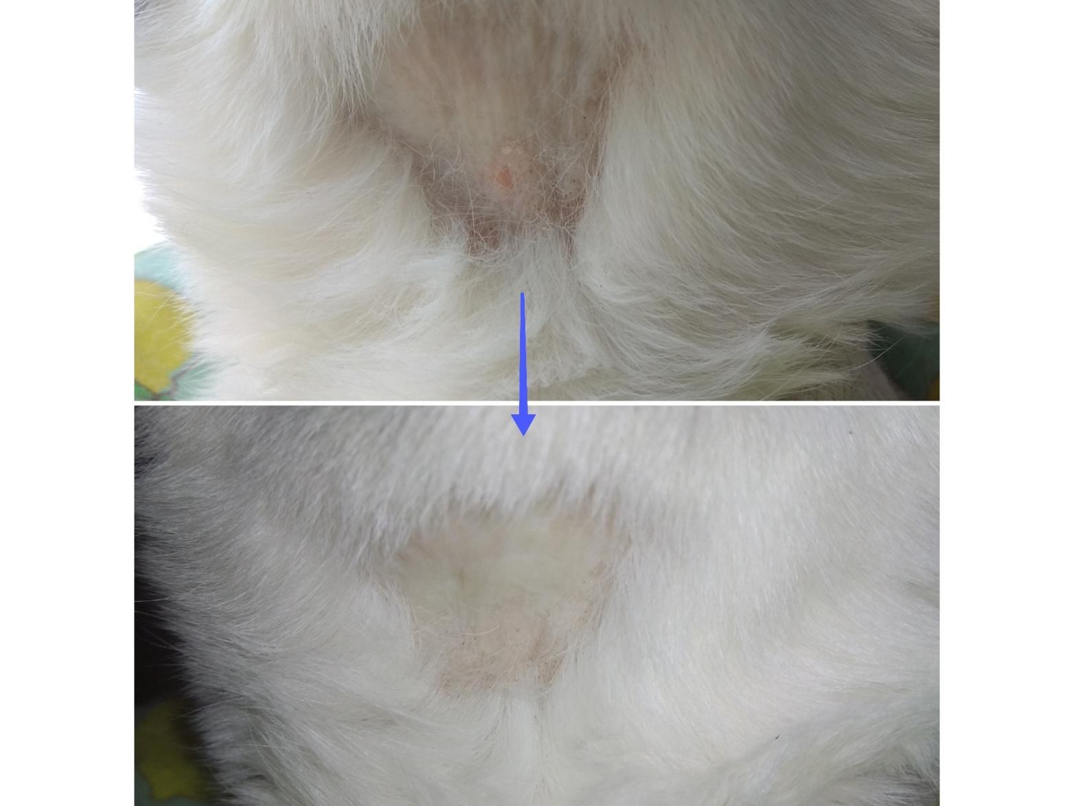 Nuevo envío de fotos de su estado por email (las de abajo). Sigue estable y la veterinaria nos ha comentado que hay avances con pruebas diagnósticas de alergias y podría ayudar a quitarme la medicación. Pero por ahora vamos a continuar con el Apoquel y la Gabapentina hasta que aseguren los resultados de la investigación en los gatos que están tratando.