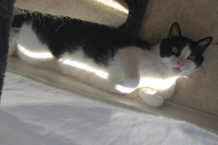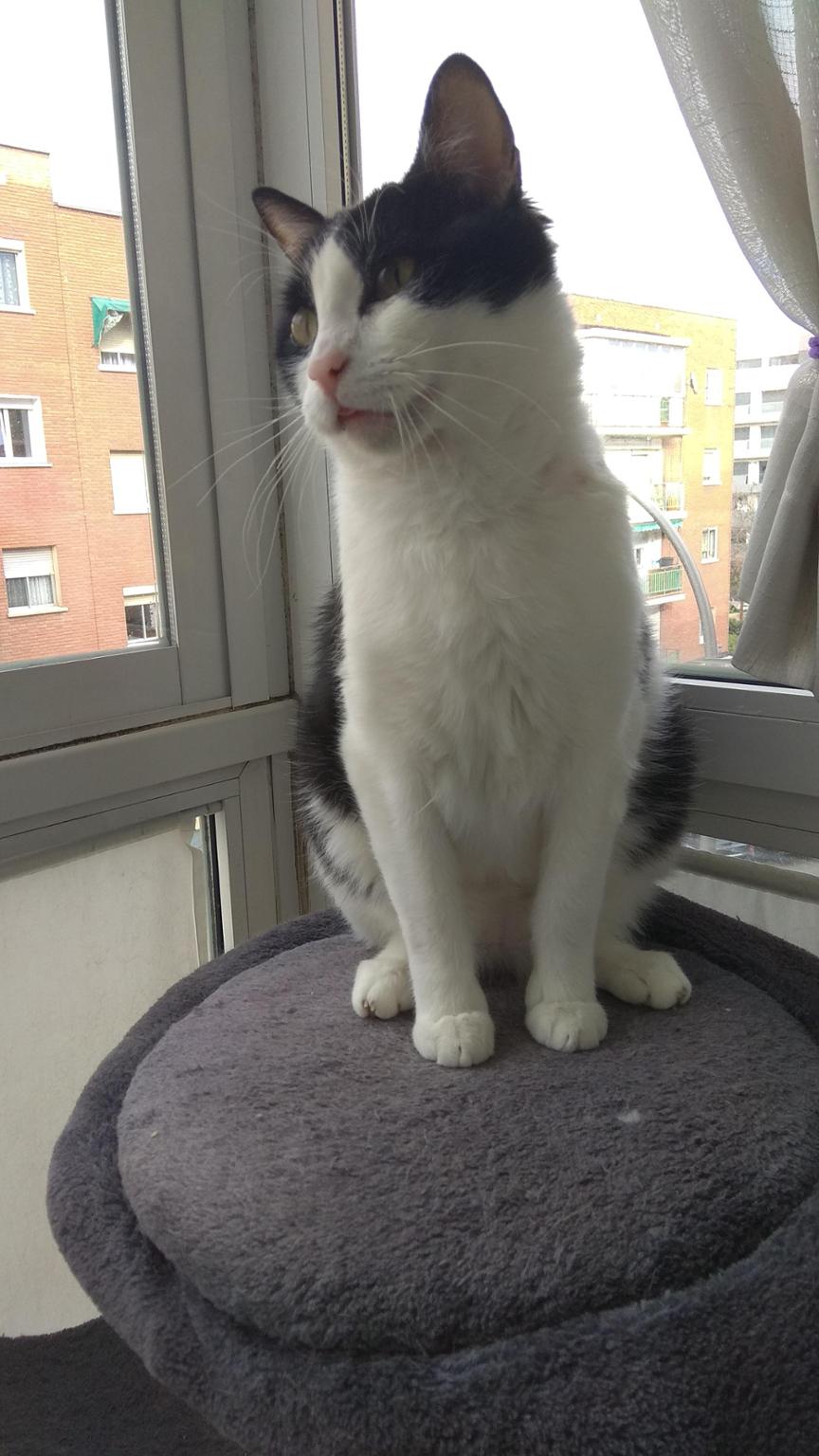 Enviamos fotos al Hospital Felino como la de este comentario, donde se puede ver mi mirada felina. Sigo manteniendo mi estado gracias al tratamiento. La veterinaria nos da el visto bueno para quitar el Urbason y seguimos con Apoquel y Gabapentina. Esperamos que este pasito vaya bien.