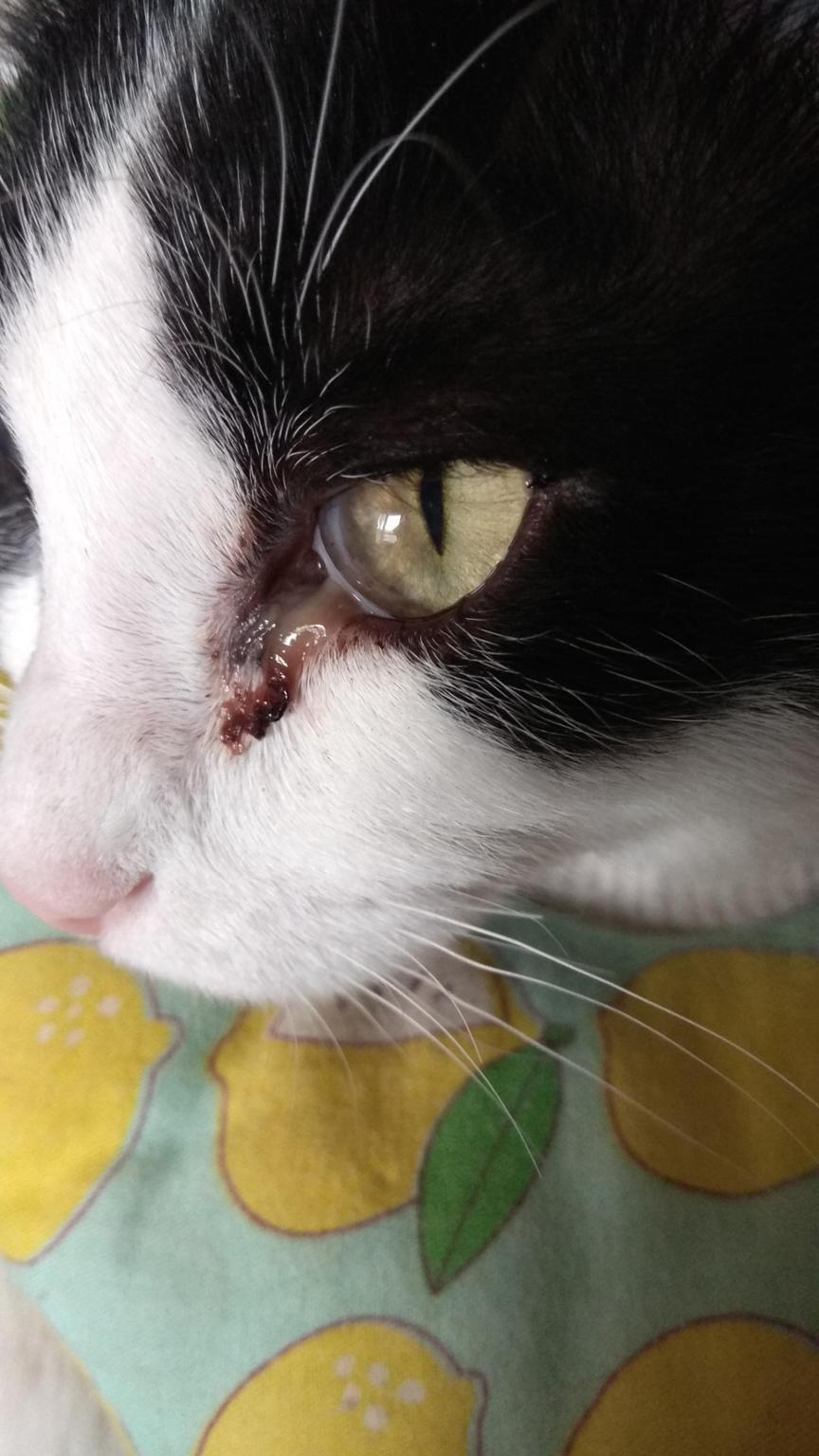 He empezado a tener legañas con mal aspecto en mi ojo izquierdo, así que le hemos enviado fotos al Hospital Felino como la de este comentario. Nos dicen que parece conjuntivitis y ahora la humana me tiene que poner gotas de colirio Tobrex varios días. Si no desaparecen las legañas, tendremos que ir a consulta presencial. Esperamos que la conjuntivitis se quite.