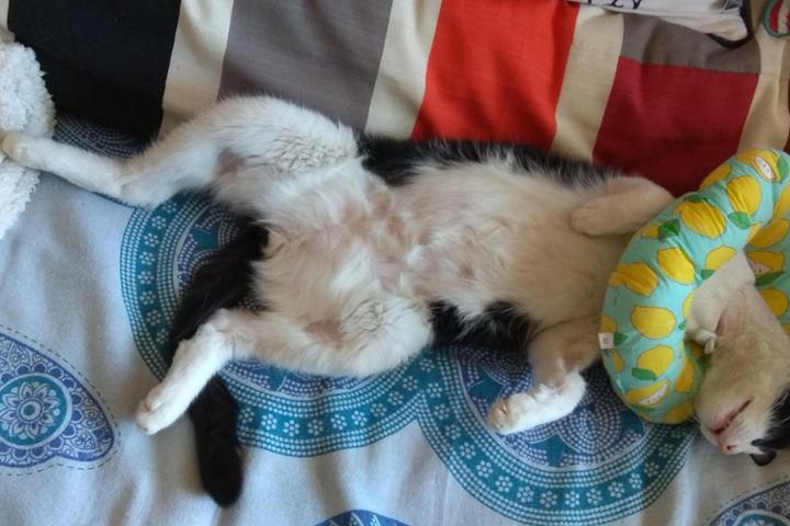 Enviamos fotos por email para el seguimiento con el Hospital Felino. Mis ojos y mi piel continúan bien. La reducción de la medicación parece que funciona, así que continuamos con el mismo tratamiento. Me he rascado un poco más que antes, de forma leve y sin consecuencias, pero la humana ha reducido mis momentos sin collar. Y me va creciendo el pelito de las calvas, aunque despacio.