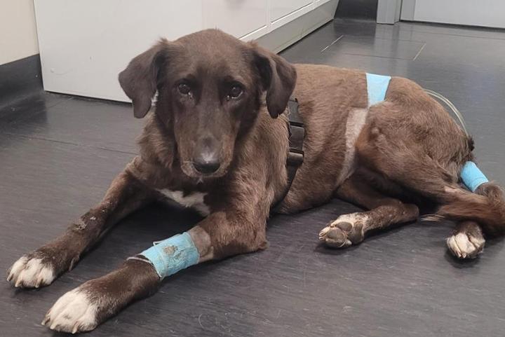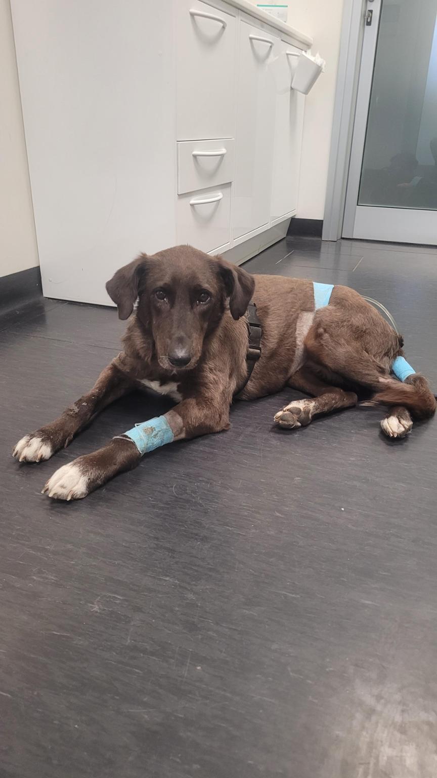 Only a doctor believed he could do it ... maybe not to walk again, but to recover strength to be able to run even if in a wheelchair ...Rocky is now under a nurse's care who looks after him with lot of love and competency!! Go Rocky go!! As soon as the pain subsides and your scars heal, you will run again!!!