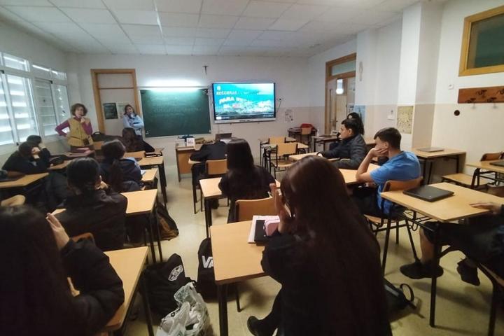 La semana pasada estuvimos el IES Mar Menor de San Javier, con 7 clases de 3° de la ESO y 2 clases de 1° de Bachiller, con el proyecto "Restaurar la Biodiversidad/Personalidad Jurídica del Mar Menor" y esta semana en el Centro San Vicente Pau en Cartagena, con 3° de la ESO, desde donde me han enviado esta foto