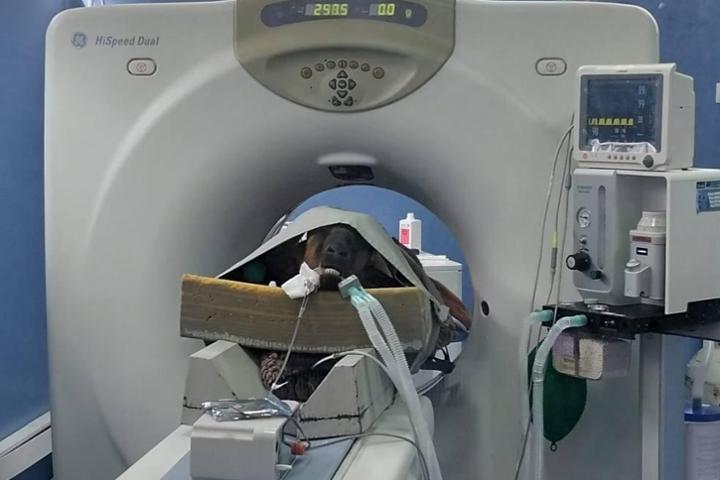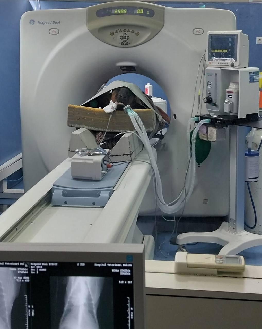 Al mismo tiempo, también hemos tenido que llevar a Terra al hospital veterinario para realizarle un TAC y varias pruebas intentando entender el dolor tan fuerte que estaba sintiendo.