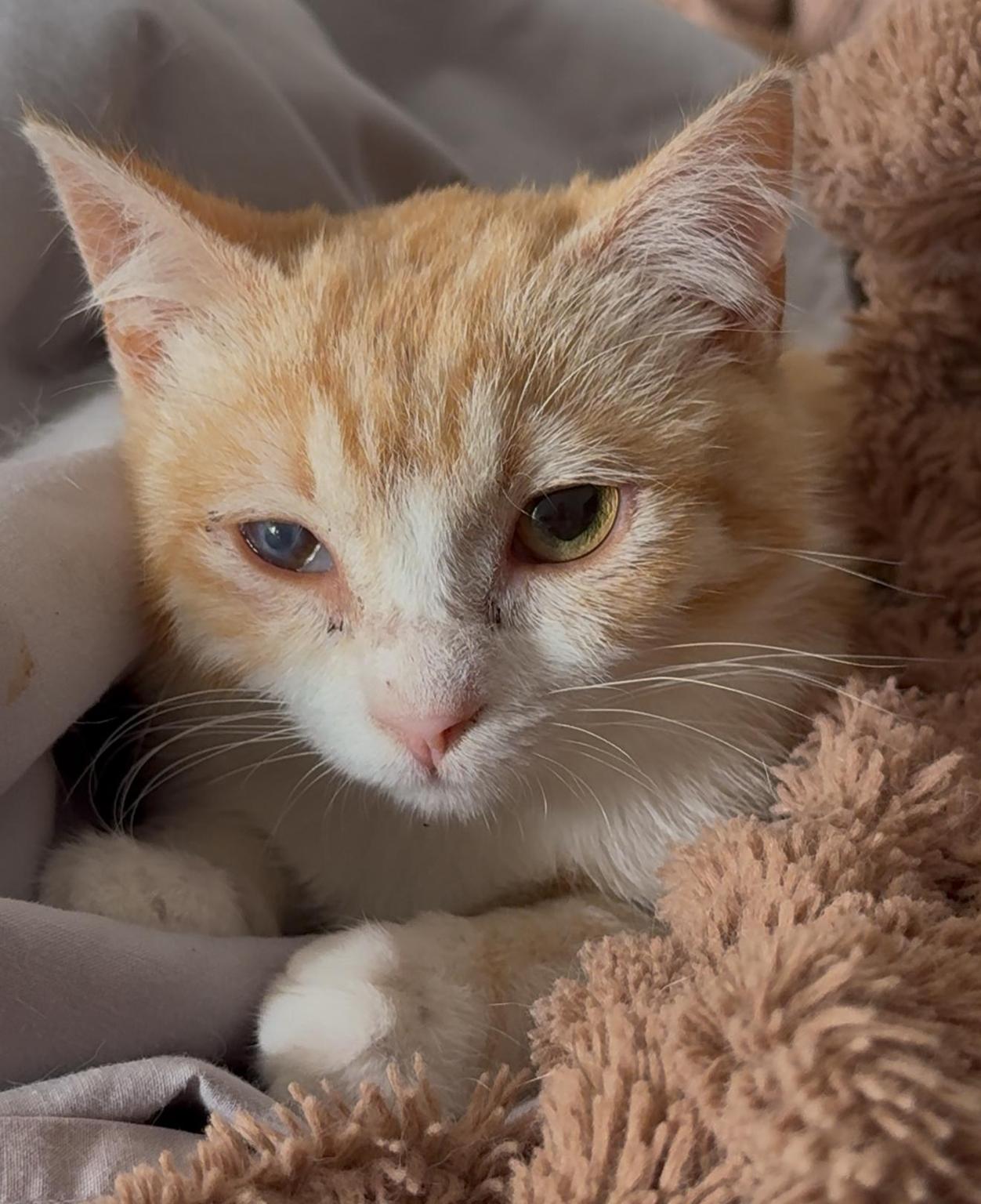 Llevábamos mucho sin pasarnos por aqui y desde la última publicación han pasado varios pequeños por nuestra prote que ya se han ido a sus hogares definitivos hoy os venimos a hablar de missy. Este bebé apareció en una de nuestras colonias en muy mal estado. Un problema gástrico le hacía perder la caca de manera abundante y líquida. Esas heces y la humedad habían quemado e irritado sus patitas, causándole úlceras profundas. Ya en tratamiento y con una casa de acogida, seguimos ayudándole a superara su