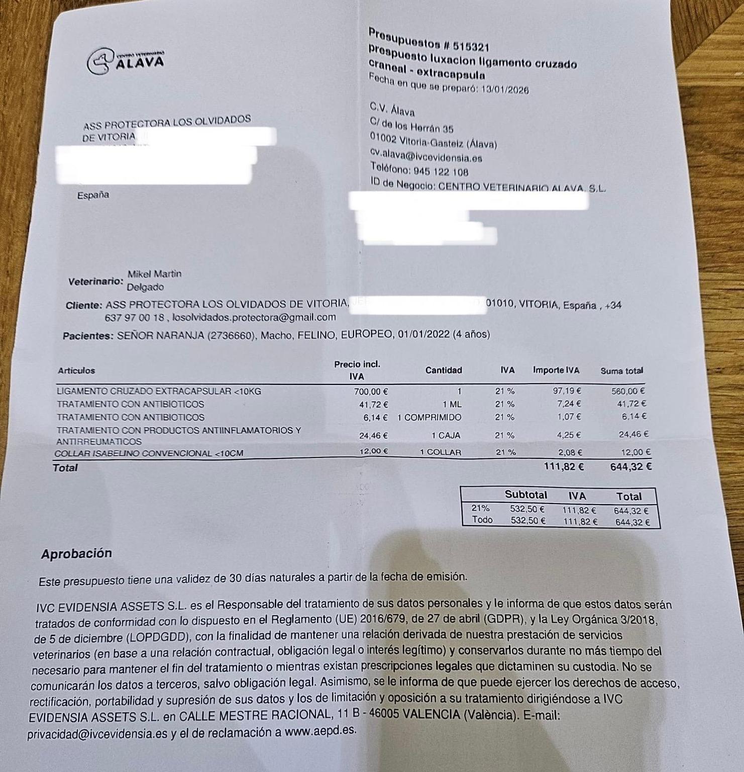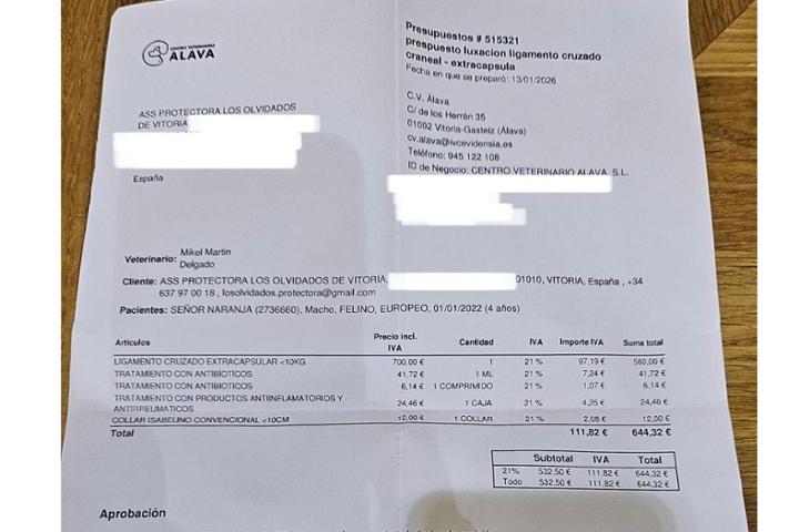 Hace unas semanas acudimos al veterinario con señor naranjo un pequeño de la colonia. Llevaba días cojo con la patita súper inflamada. El diagnóstico? Rotura de ligamento cruzado con muchísima infección… ahora, una vez acabado el tratamiento, le toca pasar por el veterinario para operar. El ayuntamiento del lugar de la colonia se lava las manos totalmente, Así que nos toca arrimar el hombro. Hasta que no se recaude el dinero suficiente no podemos cerrar la intervención nos ayudas con su caso ?