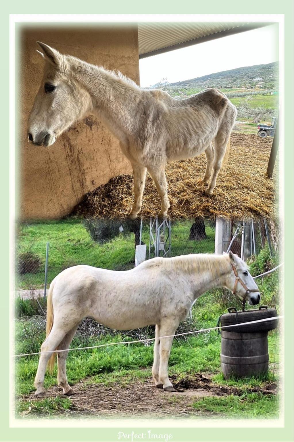 Nun wird unser Zuhause schon wieder zu klein, somit werde ich bald ins nahe gelegene Bergdorf Monda ziehen. Und wie es so kommen musste, rettete ich Schafe und Ziegen vor dem Schlachthof, Mastins (Spanische Mastiffs) und von einem andalusischen Gebrauchtwagen- und Pferdehändler Esel, die vor dem Aussterben bedroht sind, Pferde und ein Maultier.
