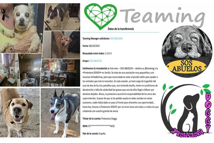 (09/10/24)- 103ª Donación del @Teaming de SOS Abuelos; Para la • Asociación por el Bienestar Animal AmaZaunk • en Barakaldo, Bizkaia. Asociación novel que nace hace seis meses con el principal objetivo de sacar perros ancianos de Centros de Recogida y ofrecerles un HOGAR donde vivir cuidados y queridos el resto de su vida. En la recámara y esperando ver la luz dos proyectos importantes, la concienciación desde la base sobre el maltrato y el abandono animal en centros escolares y el fomento de las casas de acogida de animales seniors entre la población jubilada. Esperamos que esta donación sirva para la operación de Dick que tiene quistes en la próstata, para sacar adelante a todos los pequeños que tutelan y darles el impulso que necesitan.