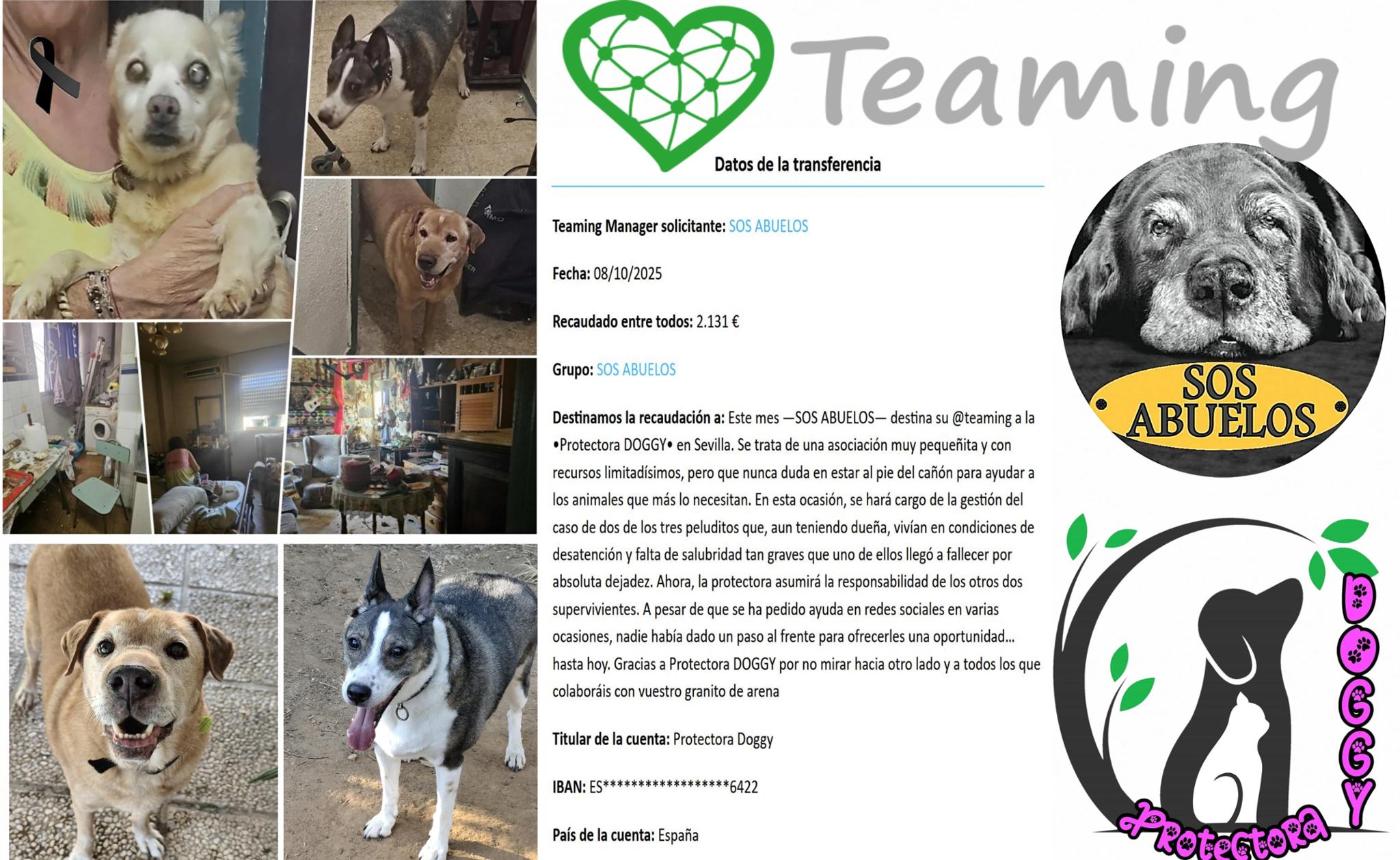 (26/03/25)- 109ª Donación del Teaming de SOS Abuelos; Para la •Asociación SOS Miradas • en Cantabria. Asociación sin ánimo de lucro creada en 2020 para representar al grupo de madrinas SOS Miradas que desde hacía años llevaba ayudando con el rescate de perros abandonados en la calle o perreras. Actualmente tutelan a 54 perros ubicados en casas de acogida, algunos de ellos afortunadamente en periodo de preadopción. Entre sus rescatados 12 son seniors de edades muy avanzadas, con los achaques propios de la edad y de muy difícil adopción. Infatigables, luchan mes a mes por sacarlos adelante hasta que encuentren un hogar definitivo y poder así seguir cambiando el destino de otros ángeles desheredados por el destino, una batalla interminable que parece no tener fin.