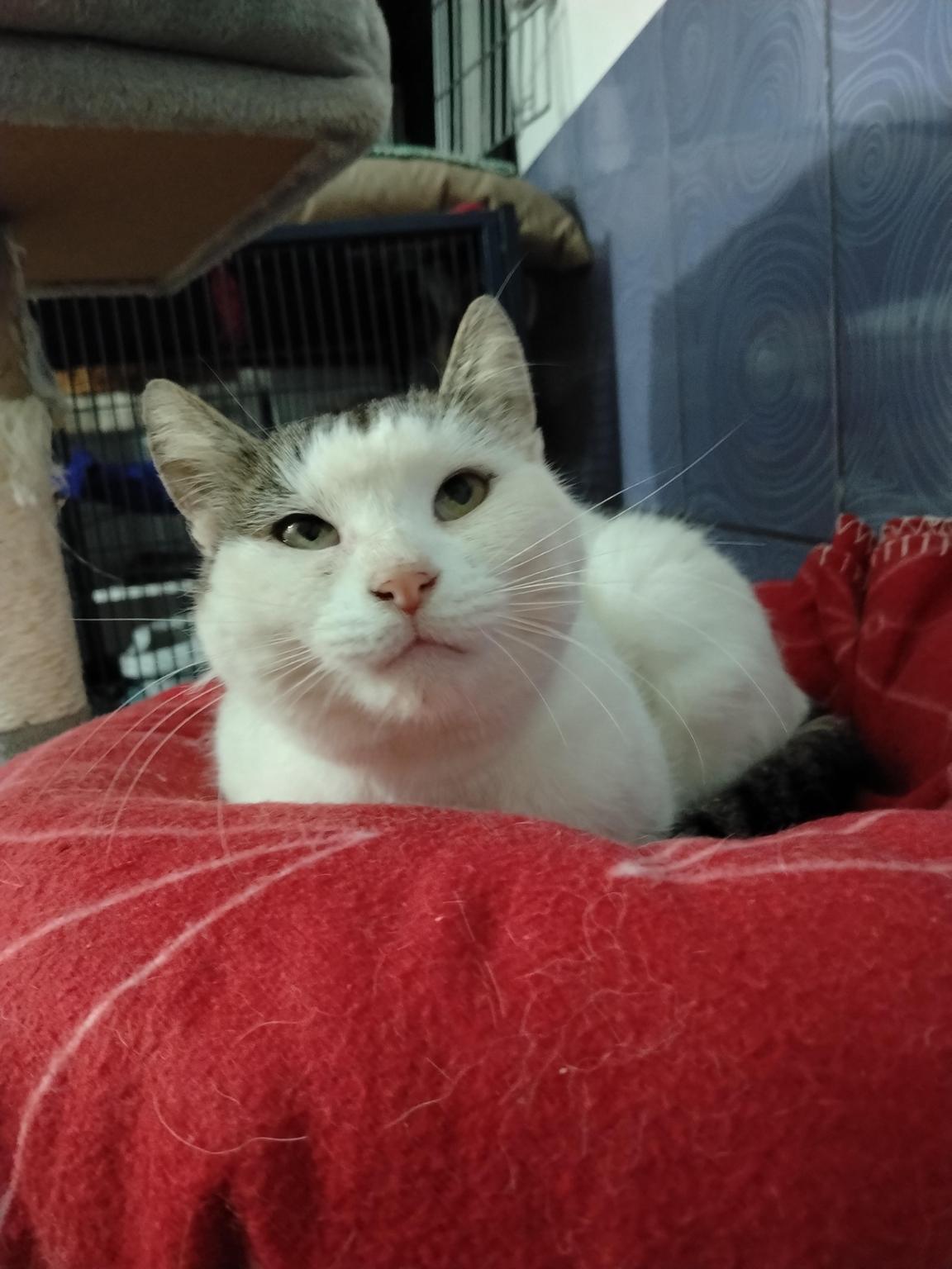 Sie ist eine freundliche, selbstbewusste Katze, die an Menschen gewöhnt ist das tut sehr weh...