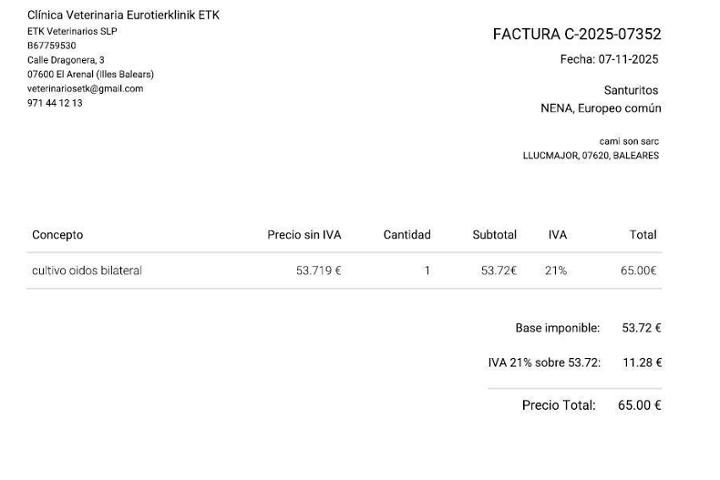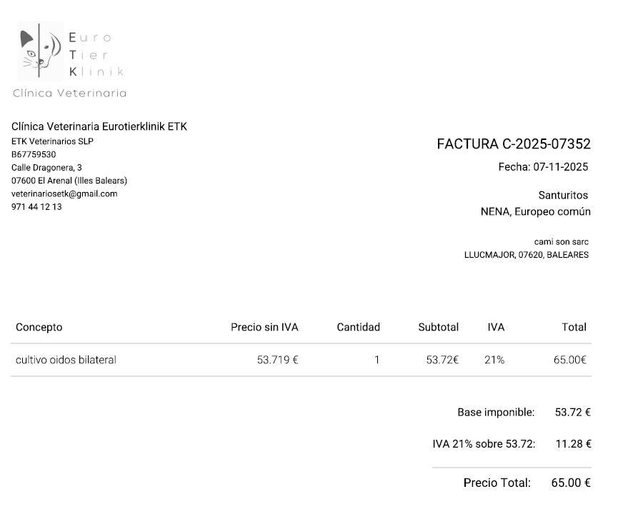 Runrun: operación dental – 280 €, latas + medicación – 8,60 €, depomoderin + inyectable – 24,95 €