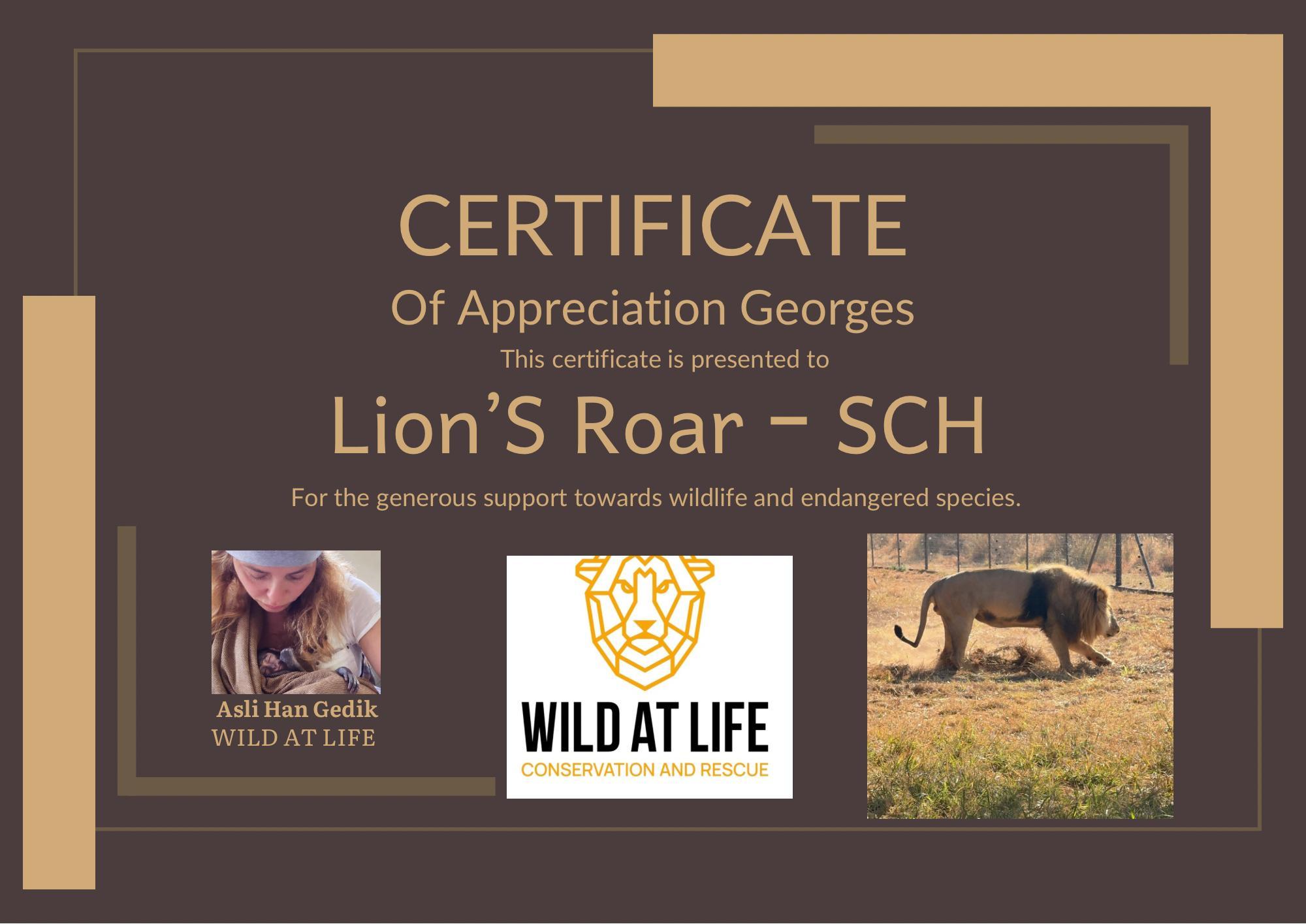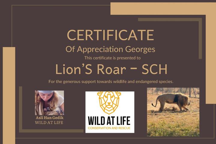 Re adopciónRe adopción de Phoenix, tras ser rescatado por Love Lions Alive junto a su madre Cleo (la cual falleció tras padecer un cáncer de pulmón), Phoenix sigue en perfecto estado de semilibertad, viviendo una vida en solitario llena de atenciones y cuidados. Con esta donación Lion'S Roar sigue colaborando con el santuario de leones, agradeciendo a todos los voluntarios que velan por su seguridad. Gracias por a todos por hacerlo posible una vez más.