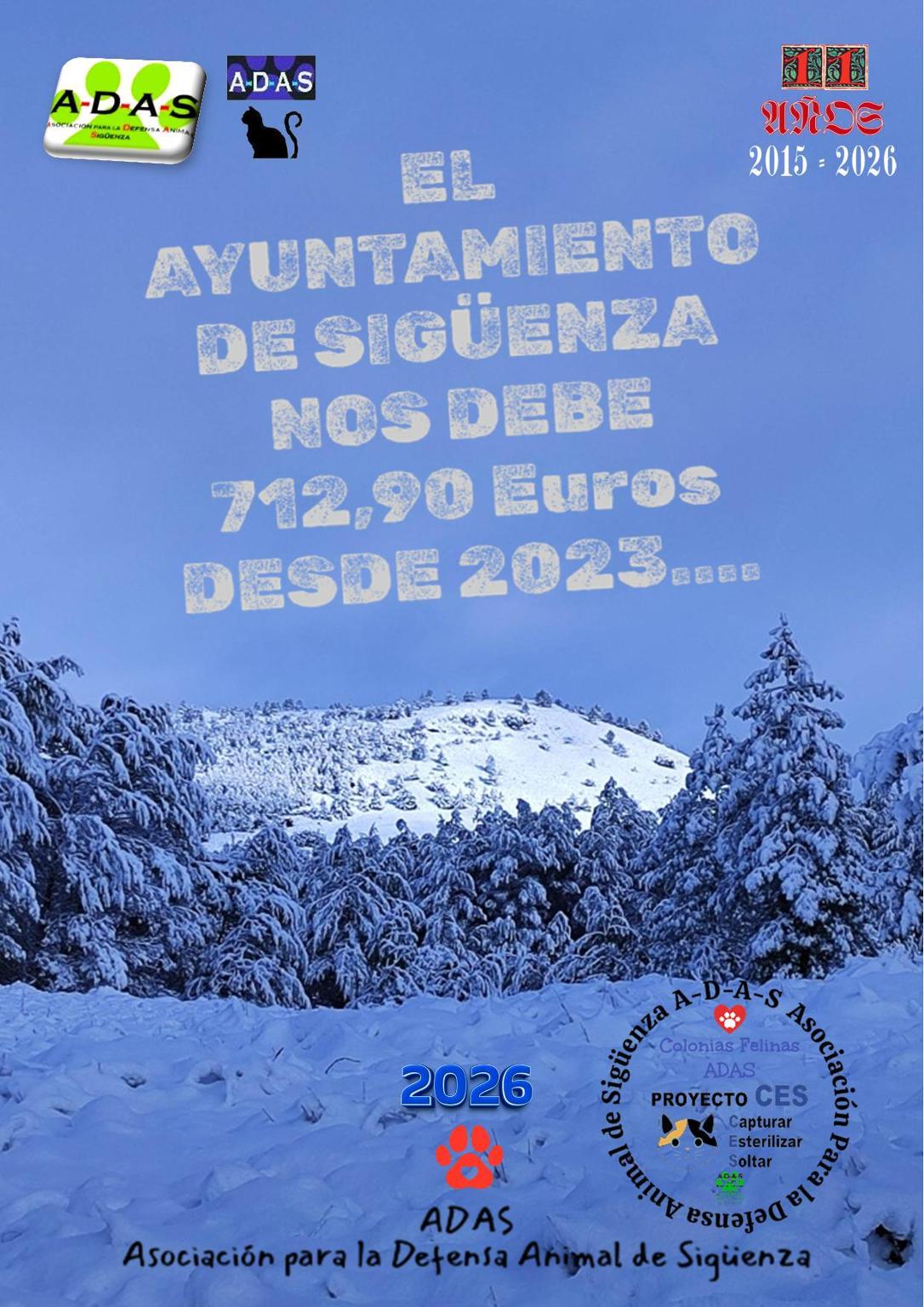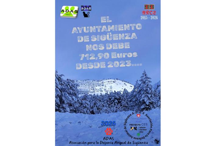 El Ayuntamiento de Sigüenza nos debe 712,90 euros, desde el año 2023. Por recogida, gastos veterinarios, alimentación y acogida de varios cachorros abandonados, por recogida de otros perros adultos también abandonados en Sigüenza y otros servicios prestados.