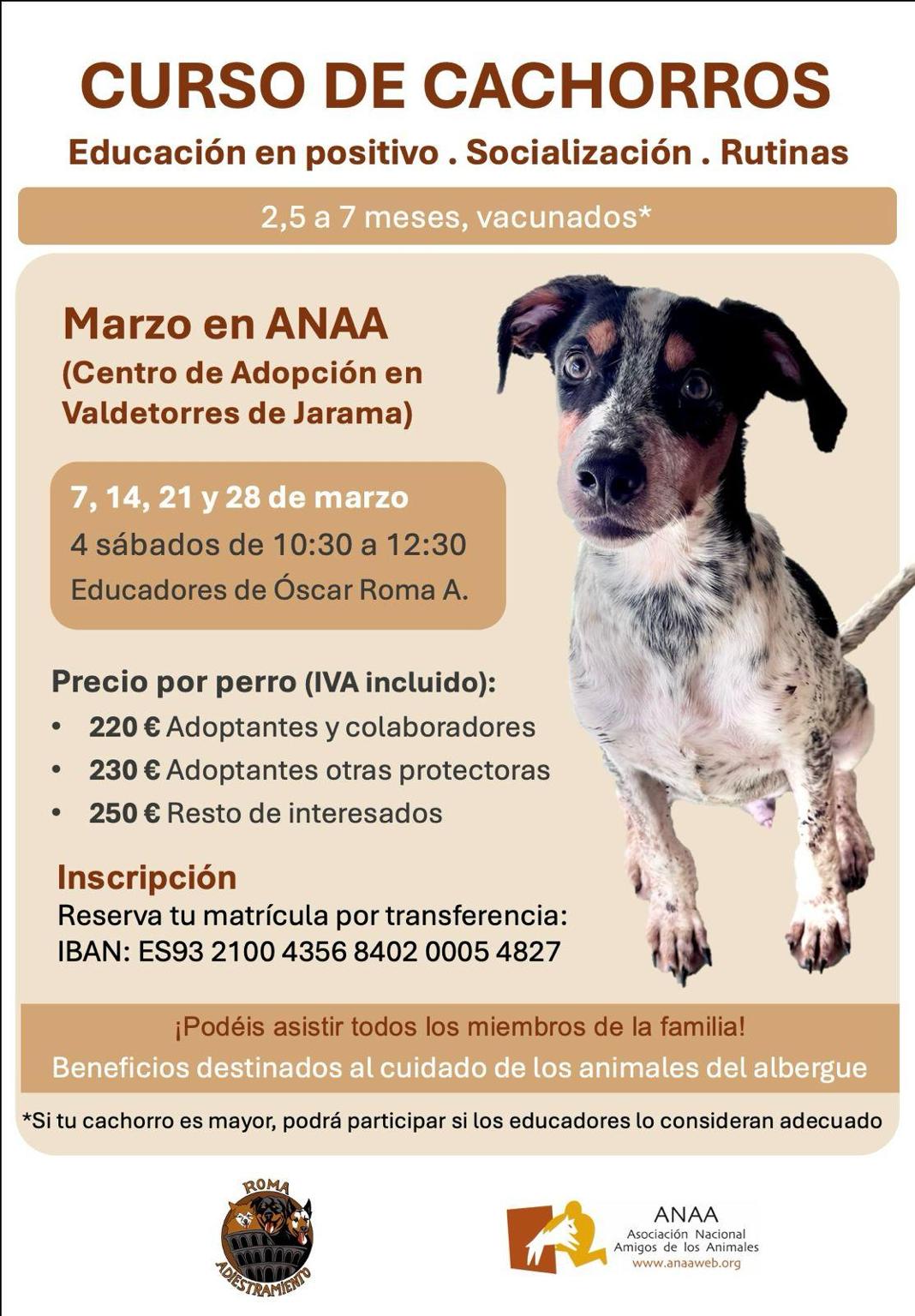 Durante el mes de marzo, ¡realizaremos un curso de cachorros en las instalaciones de ANAA!