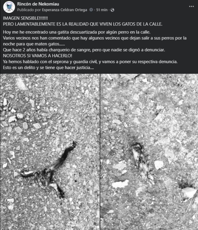 Hace unos días fueron las fiestas del pueblo y nos informaron de lo sucedido hace 2 años con la matanza de gatos callejeros por la suelta de perros por la noche para ese cometido.