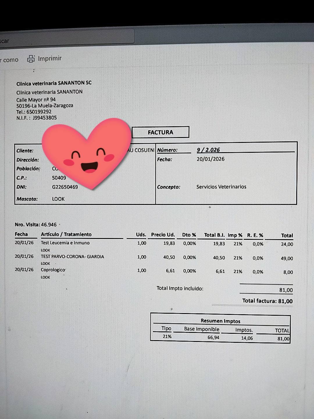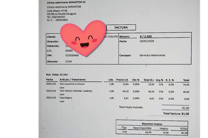 Dejamos foto de factura de esterilización de un macho y una hembra.