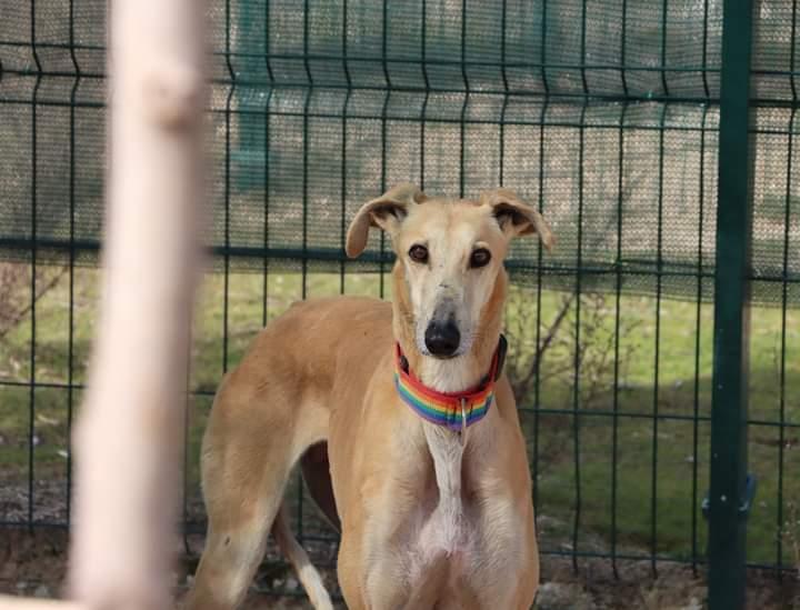 Sol nos observa desde lejos, con miedo. Esta preciosa galga, de unos 4 años, con temor a las personas, necesita una familia que le dé tranquilidad, con paciencia y mimos. Llegó en muy mal estado y ahora está preparada para ser feliz. Sol ha sufrido mucho, ¿quieres darle una nueva vida?.