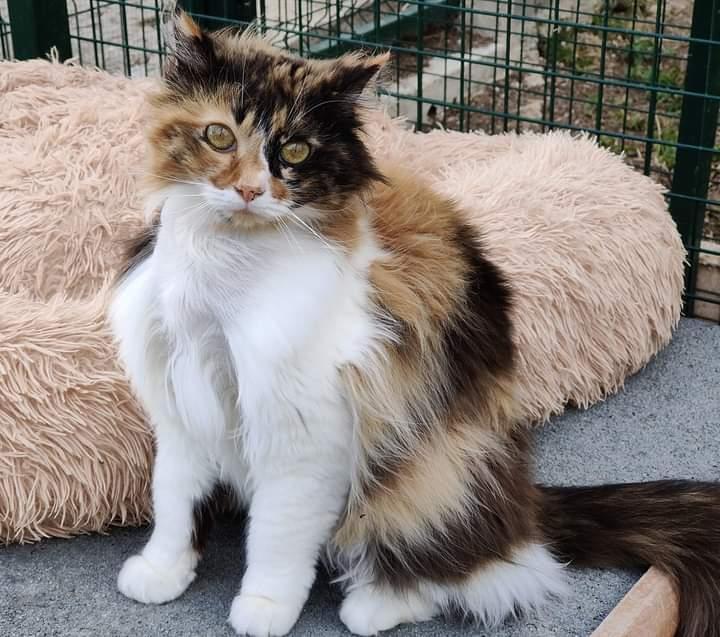 Greta es una gata tricolor preciosa, que fue rescatada de la calle hace ya varios años. Tenía la boca en muy mal estado, tuvimos que operarla y no tiene casi dientes. Necesita un hogar para ser feliz, es muy cariñosa, un bombón de gatita. Adopta a Greta, llenará tu vida de amor y ronroneos.