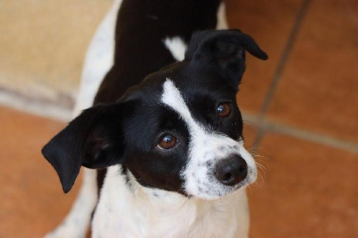 Los primeros días no quería mirarnos, pero su corazón es noble, va olvidando el daño y el desprecio de los humanos. Tras dos semanas con nosotros, mueve el rabito y nos emociona con su creciente alegría. Va engordando poco a poco, se muestra cariñosa con otros perros y está preparada para encontrar un hogar.