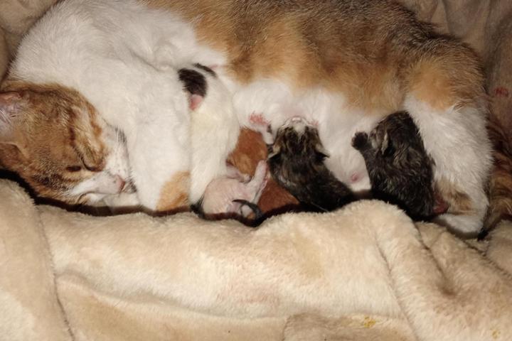 Os dejo una foto de la mamá y sus bebés. Se agradece también la difusión.