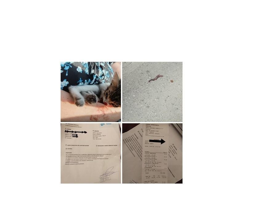 Después de esta noticia os dejo las fotos del gatito bebé asesinado en mis brazos camino al hospital clínico. Costó 100 euros el ingreso, ya que pudo luchar el bebé su cuerpecito durante toda una noche, con todo el dolor del mundo recibimos la llamada por la mañana que falleció a la mañana siguiente. También está incluida toda la medicación que le dieron para que no sufriera mientras luchó por su vida. Por favor, estamos a cero y necesitamos ayuda económica, agradeceríamos muchísimo una pequeña ayuda, sea simbólica o grande, estaremos enormemente agradecidxs. Ya que nos haremos cargo de la castración de la mama el día 31 de julio que tenemos en casa con sus bebés para que vuelva al retorno.
