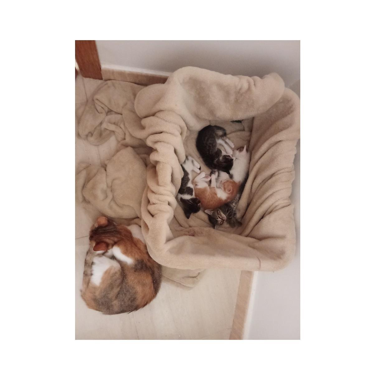 Hoy ya la mamá, como la llamamos mi pareja y yo "la chiquiturra", ya está esterilizada, aún se encuentra un poco con los síntomas de la anestesia, llegó a casa aturdida, nerviosa, angélico... No puedo imaginar el estrés que a podido pasar... La clínica Nature Vets fueron muy majos. Ya comió y está más tranquila. Y puede seguir dando de mamar a sus peques mientras siguen en casa en adopción y ya puede volver al retorno de la colonia como a casa cuando ella lo desee y mientras sus peques están en adopción responsable, gracias a la grande ayuda de la asociación Por Patas de Granada. Estoy infinitamente agradecida por la ayuda y el apoyo infinito y precioso por parte de la asociación Por Patas y de Esperanza con quién tengo contacto y es una gran persona, muchísimas gracias por la ayuda y el apoyo compañeras.