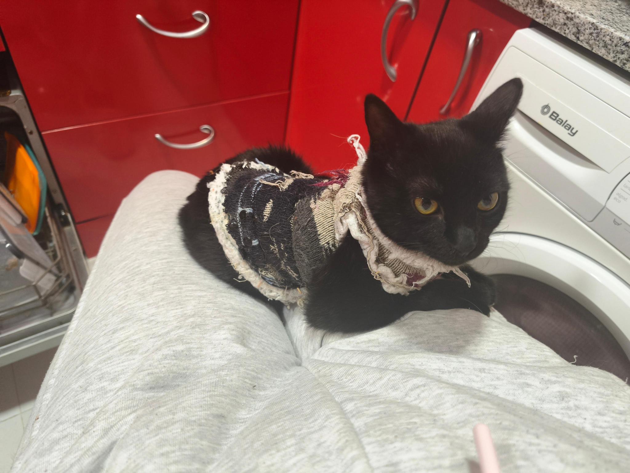 Las chicas de Feral se encargaron de todos los gastos veterinarios pues se dieron cuenta de que Leo tenía un tumor en una oreja, había que darse prisa y ponerle el tratamiento cuanto antes,pero el problema era ahora donde lo podemos llevar que sea casa de acogida y le cuiden como se merece?