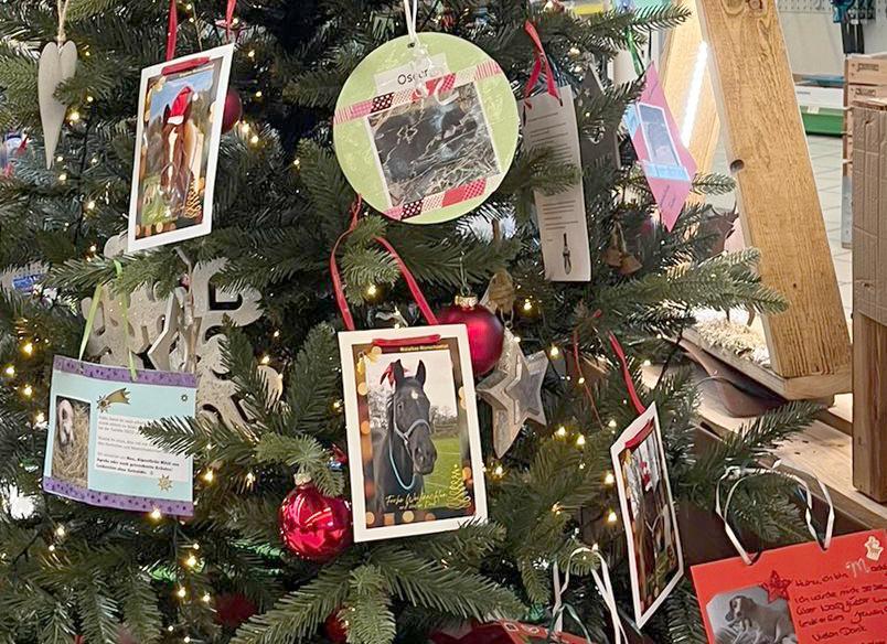 Ihr möchtet den Seniorpferden etwas zu Weihnachten schenken? Das ist eine tolle Idee! Darüber freuen die Oldies sich sehr. Im Raiffeisen-Markt in Erkrath-Unterfeldhaus haben sie ihre Wünsche an den Weihnachtswunschbaum gehängt: Meistens ihr Lieblingsfutter bzw. das, was sie täglich dringend brauchen.