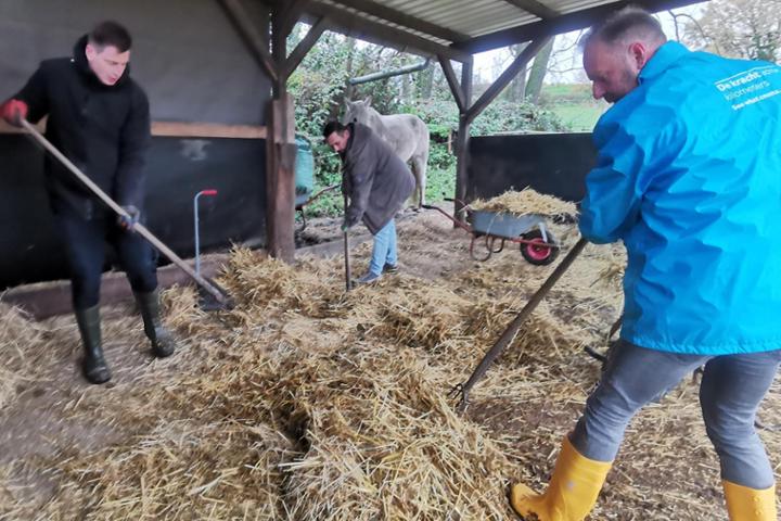 Beim Mini-Social-Day könnt Ihr einzeln oder z.B. mit ein, zwei Kolleginnen oder Kollegen unsere Ehrenamtler unterstützen. Auf unserem Hof arbeitet Ihr dann in gemischten Teams mit unseren Ehrenamtlern und evtl. Mitarbeitenden anderer Unternehmen zusammen. So ein Mini-Social-Day ist auch ein toller Schnuppertag für alle, die anschließend vielleicht öfters helfen kommen mögen.