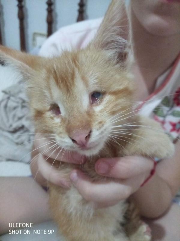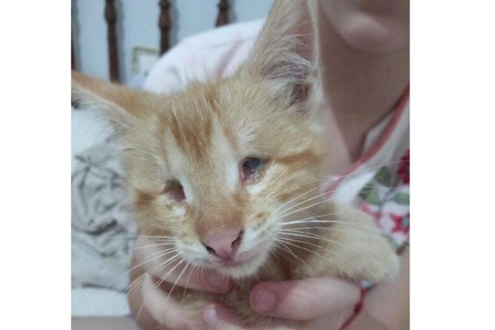 Daisy es una gatita encontrada por unos vecinos en un pueblecito cercano con los ojitos en tan malas condiciones que no sabíamos si los había perdido los dos.