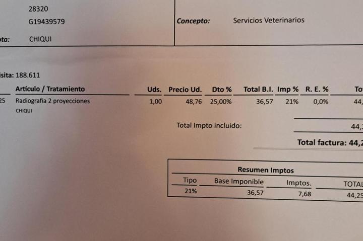 Factura de Simón.Gato que tienen que enuclear el ojo