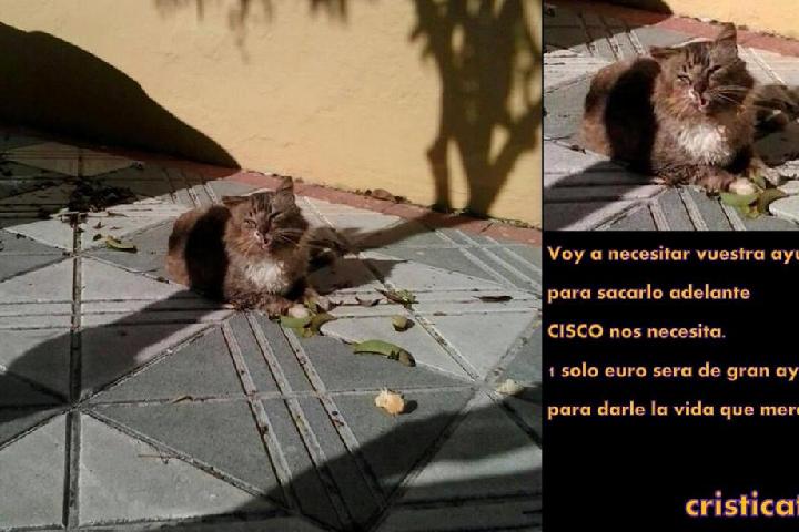 Como este ángel de los gatos llamado Cristina, no para, ya ha visto las fotos y ha leído la historia de otro gato también enfermito al que proximamente se traerá en acogida, asi que si en honor a pablito queréis seguir ayudando a otro pobre infeliz que morirá horriblemente en la calle si no se le ayuda, no os borréis, pronto en vez del teaming de pablito, será el teaming de cisco, pero creerme, vuestro euro no tendrá mejor destino!!!