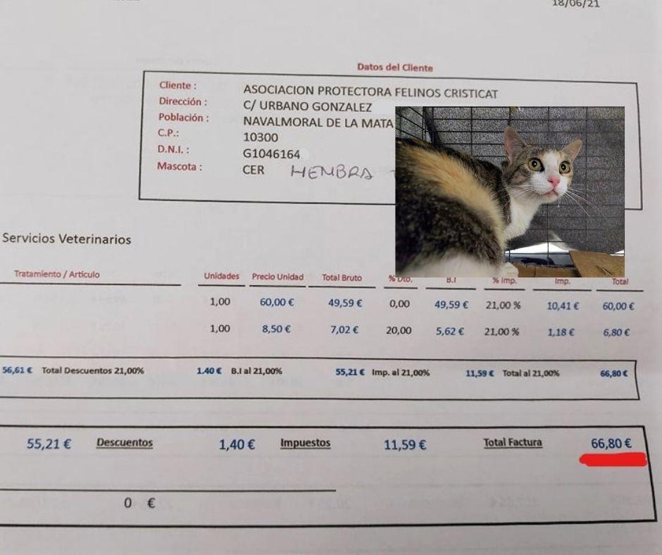 Esta es la factura de la pareja. Se han llevado una pipeta además de la castración para reforzar un poquito sus defensas.