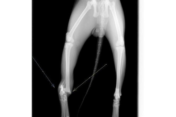 Os subimos la radiografía de Naranja. Tiene una fea luxación tarsal que necesita ser operada. Solo la operación son 192€.