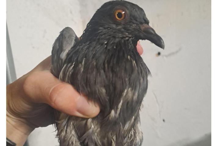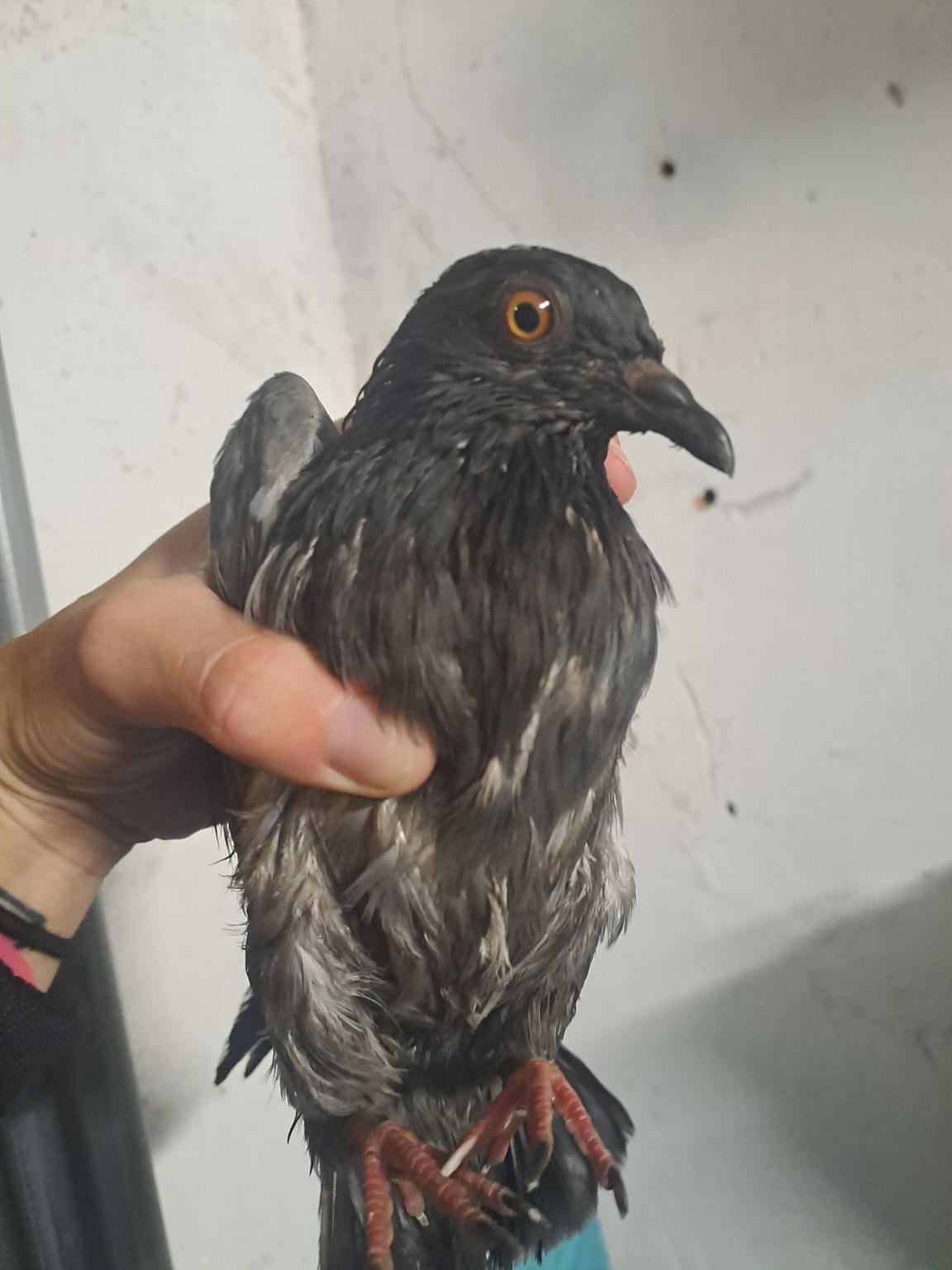 Premio, mojada por la lluvia se quedo en la acera sin poder volar y la rescaté ya de noche..