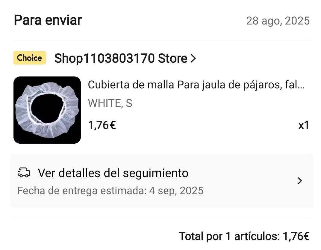 Malla para cubrir jaula de palomas. 1,76 euros.