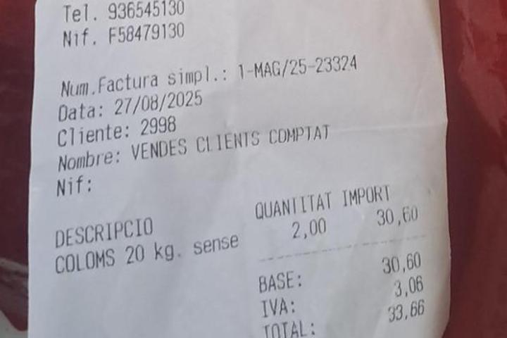 Compra de 2x 20kg de semillas. 33,66 euros.