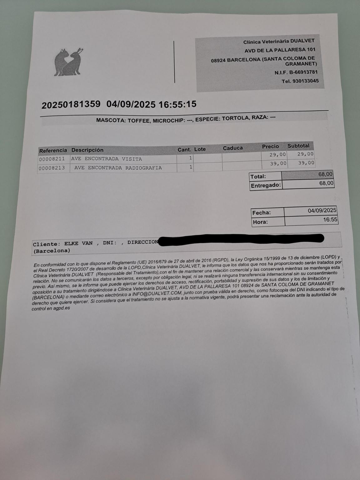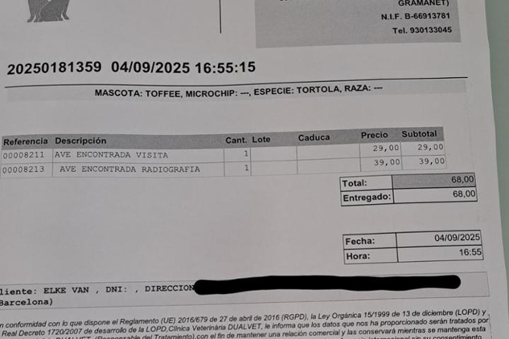Factura de Toffee, 68 euros. 20 euros recaudados en RRSS.