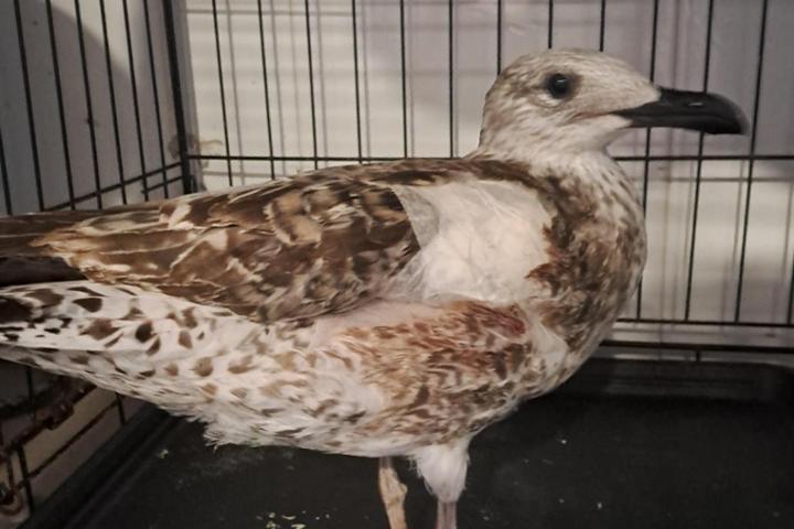 Mochi, gaviota joven con fractura abierta en el als que necesitará amputación.