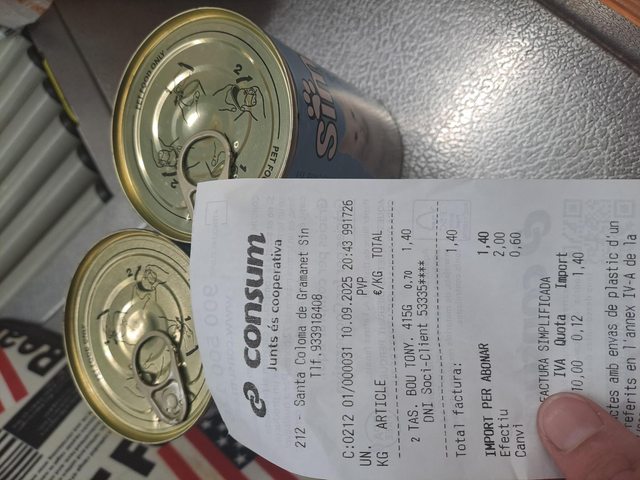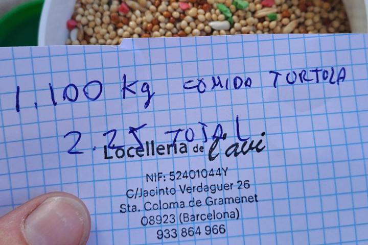 Compra de comida para gaviota Mochi. 1,40 euros.