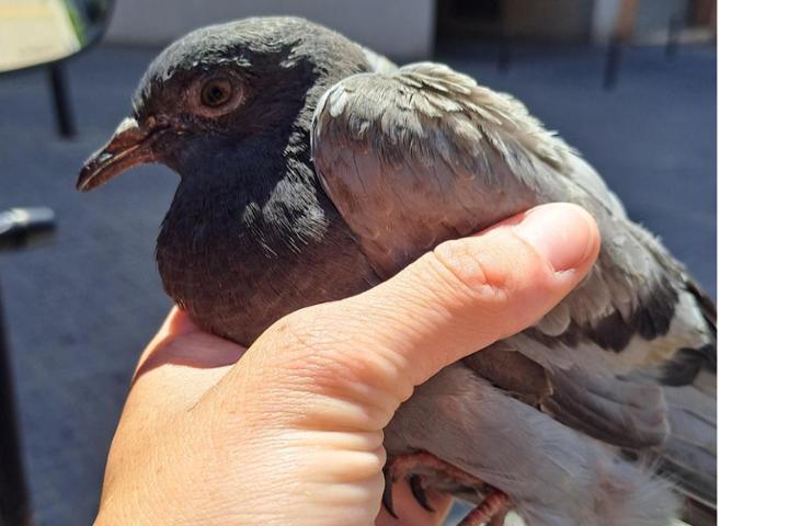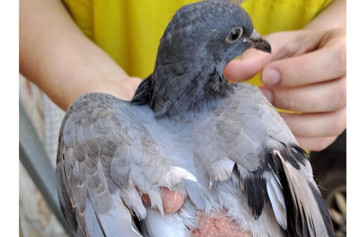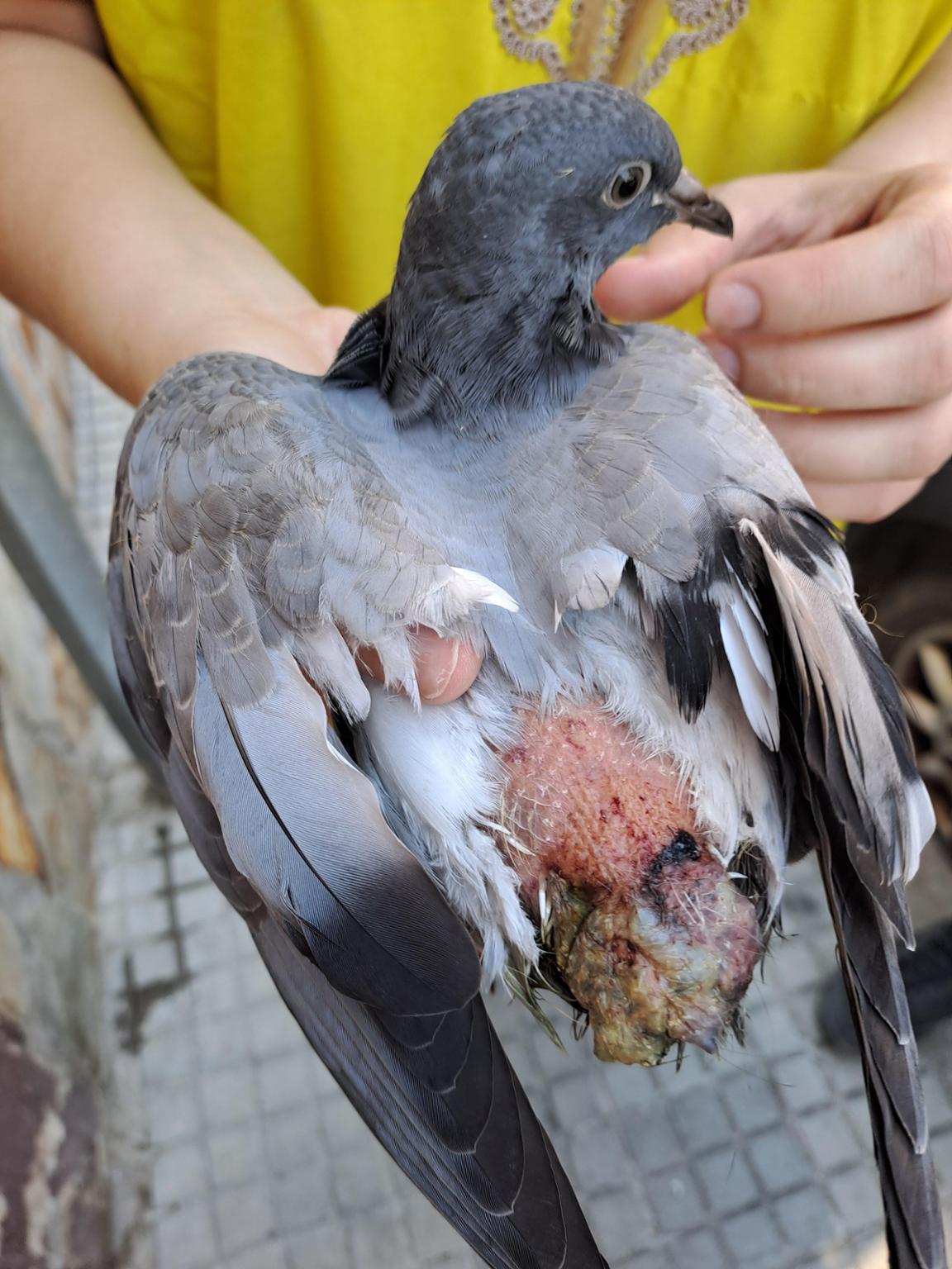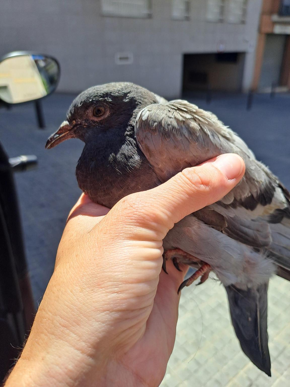 Pulguita, un pichón con parálisis en las patas que se iba arrastrando por la calle y que nadie se molestaba en ayudar.. Le ingresé en el veterinario y se quedó una noche porque estaba muy debilitada.