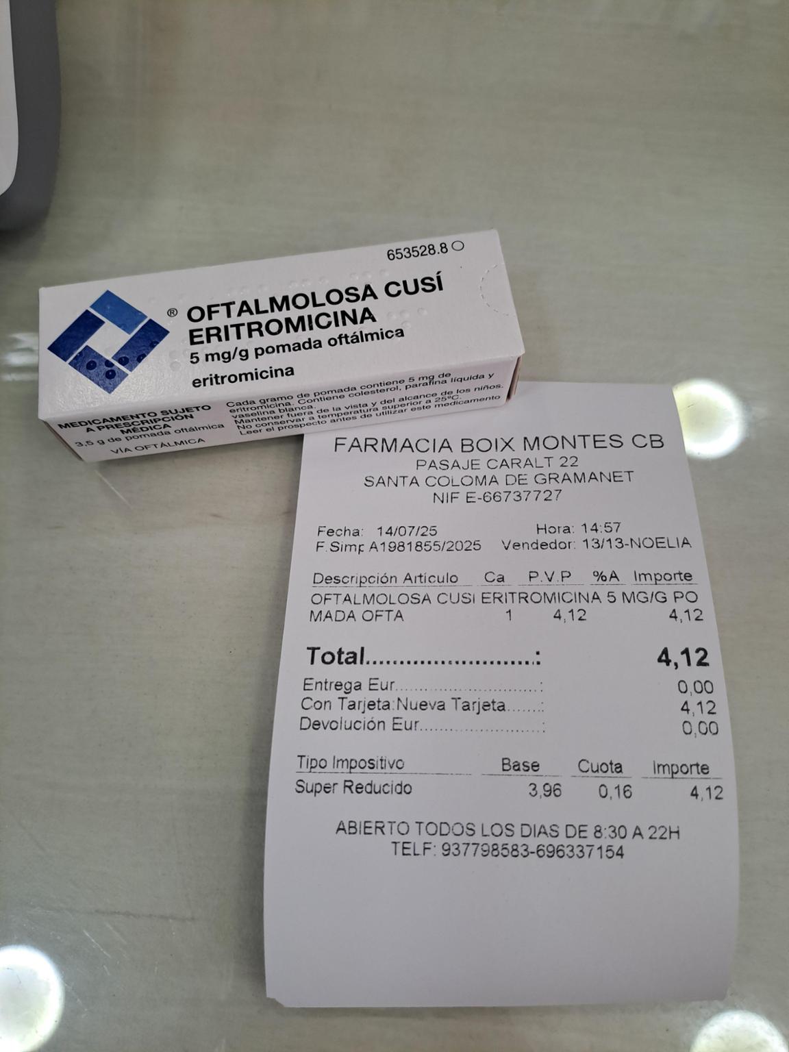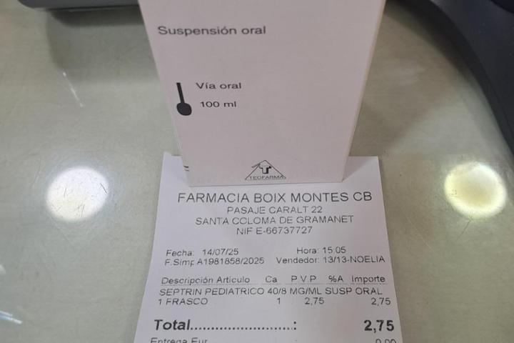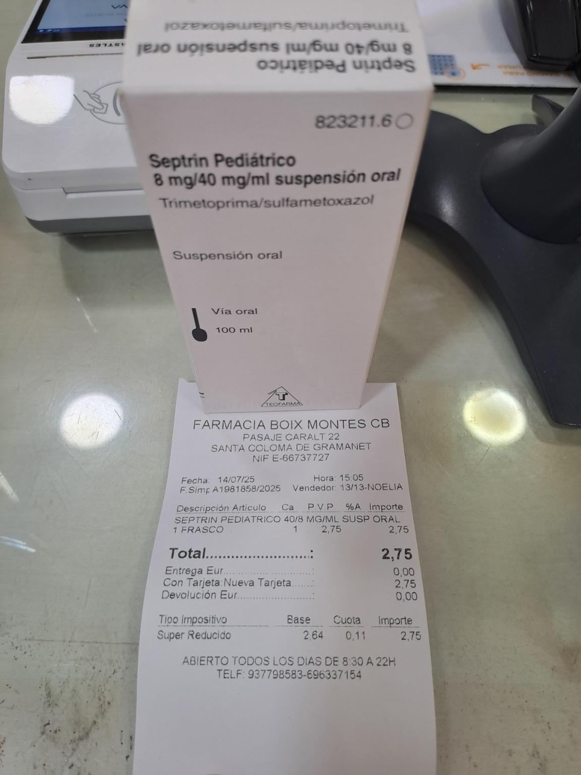 Factura de Mont. 122,25 euros. 115 euros cubiertos.