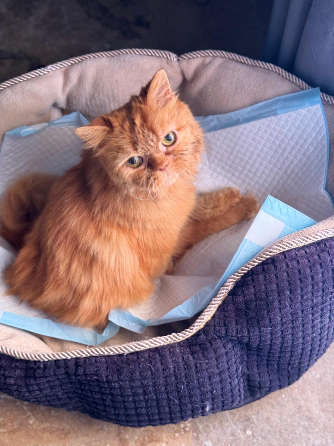 Se llama Herminia porque ha aparecía en estos días de lluvia sin descanso y pesa 1,2kg, obviamente era de alguien, llevaba un collar antiparasitario de supermercado, sin chip y en este estado de abandono total, entiendo que Herminia lleva muchísimo en la calle.