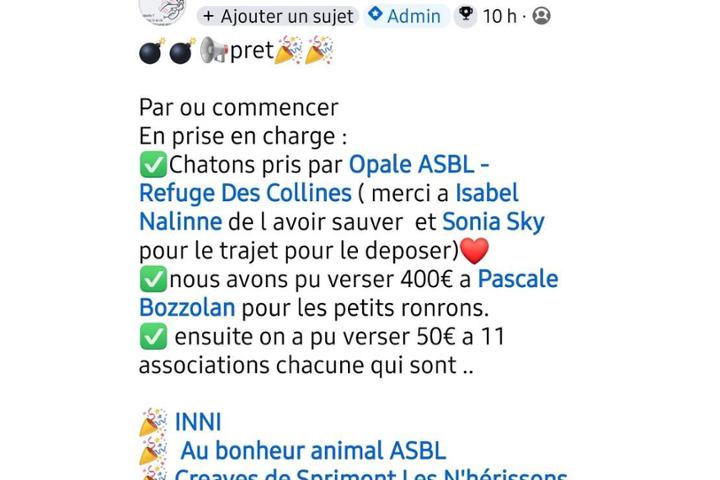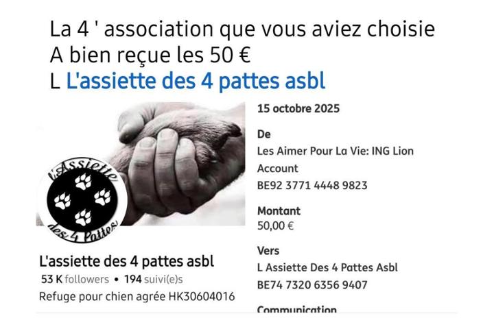 Merci a vous l asbl a ete creer pour aider , soutenir les refuges et animaux , ainsi que les personnes dans le besoin