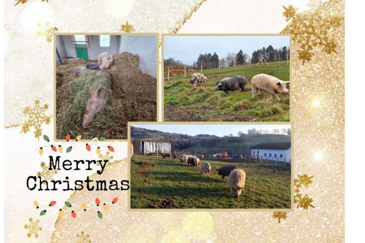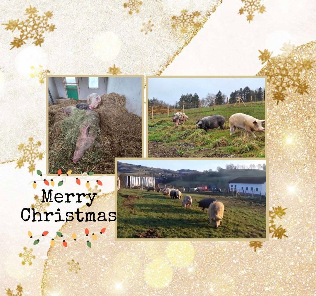 Zusammen mit unseren Schweinen auf unserem Seniorenpflegeplatz (mit großem Freilauf) bei Gersfeld möchten wir euch allen frohe Weihnachten und einen guten Rutsch ins neue Jahr wünschen.